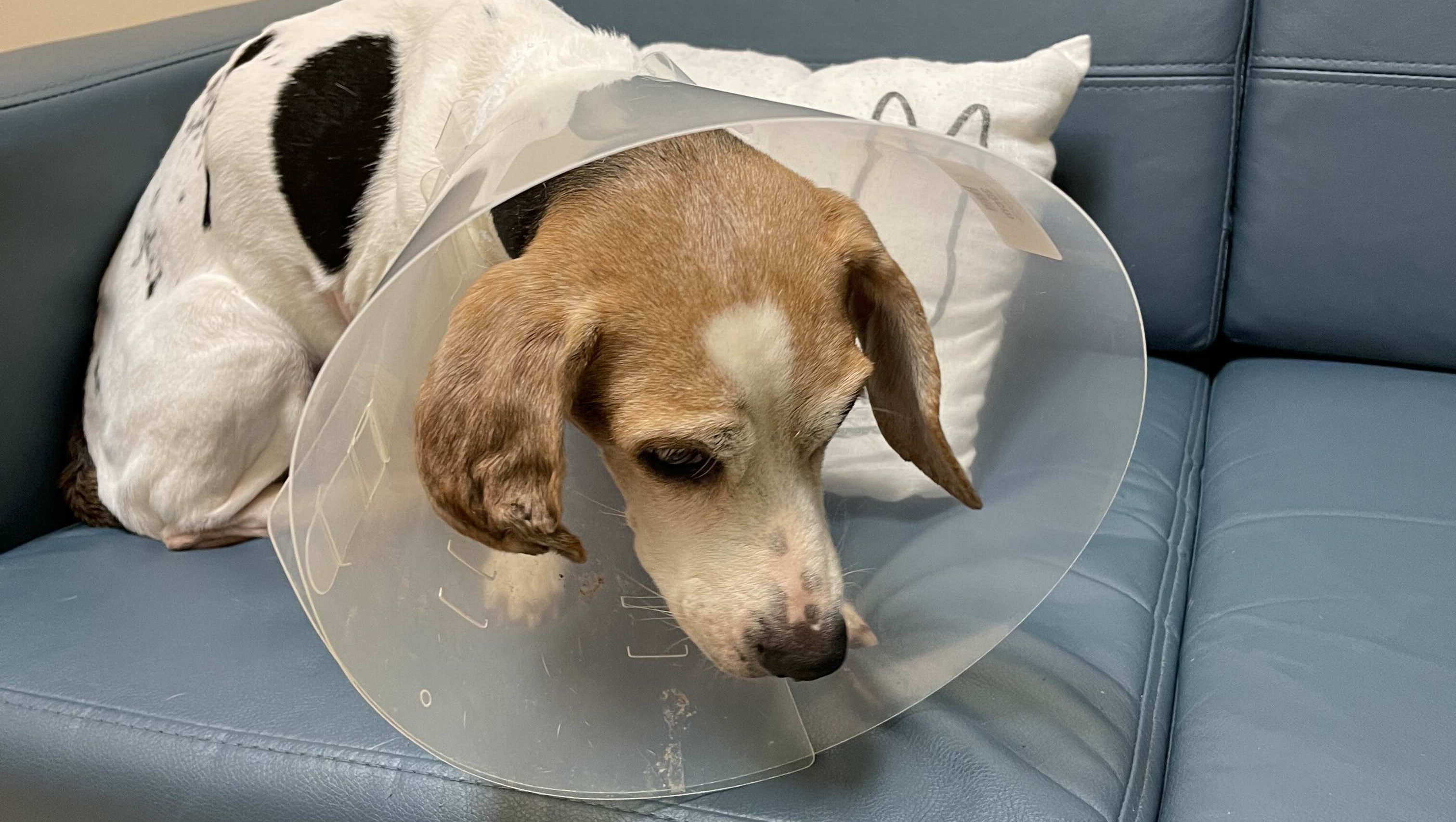 Delia is still having a little bit of issues with recovery. She still has not eaten or fully gotten back to normal. Last night they had to insert an NG tube because she was accumulating fluid in her abdomen. She is still in a lot of pain as well. A good sign is that anytime she saw me or when I pet her, she started wagging her tail.