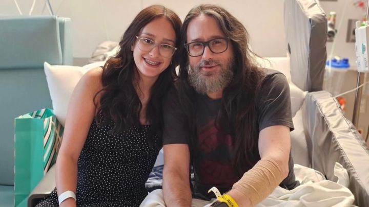 This is a photo of a visit from his daughter Raven during a moment of joy.