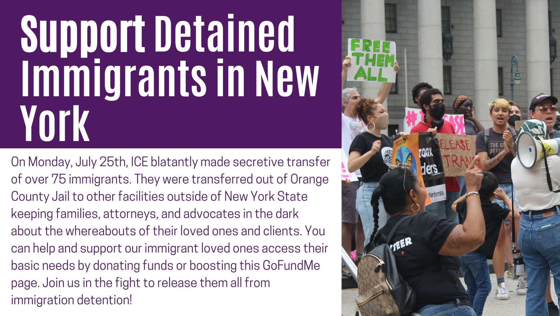 On Monday, July 25, 2022 Immigration and Customs Enforcement (ICE) began transferring immigrants detained at Orange County Jail (OCJ) in Goshen, NY, to other facilities outside of New York State. ICE has been blatantly secretive about these transfers, keeping family, attorneys, and advocates in the dark about the whereabouts of their loved ones and clients.