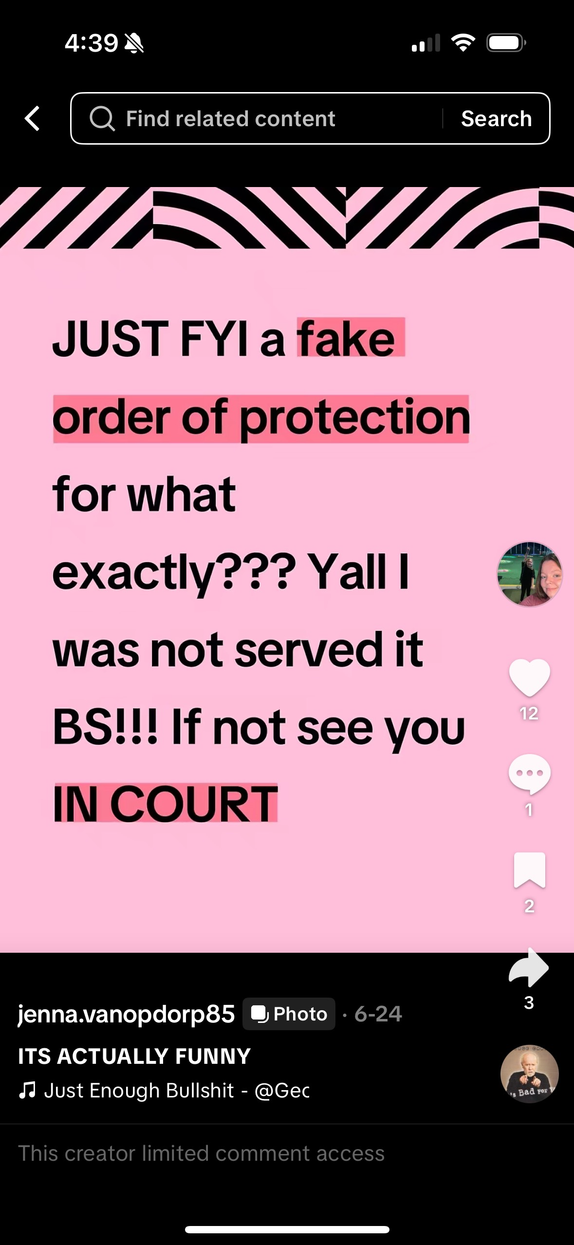 Your support on this GoFundMe will help me recoup these costs—but it’s about much more than money. It’s about sending a clear message to Jenna—and anyone who hides behind “it’s just my opinion,” the First Amendment, or “fair use”—that posting defamatory, threatening content will not be tolerated.