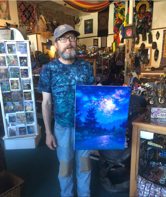 Global relationships were forged and maintained with women's support collectives making batiks in Bali or collectives in Peru or Guatemala creating shawls, handbags and purses to support their children, each other, and to feed their families. Donald always operated in fair trade and made sure that the artists he supported were making a livable income from their work. He introduced the northwestern corner of California to the vision paintings of artists from the Amazon region of the world, and helped to interweave each piece of our Global Village to another with love and purpose.