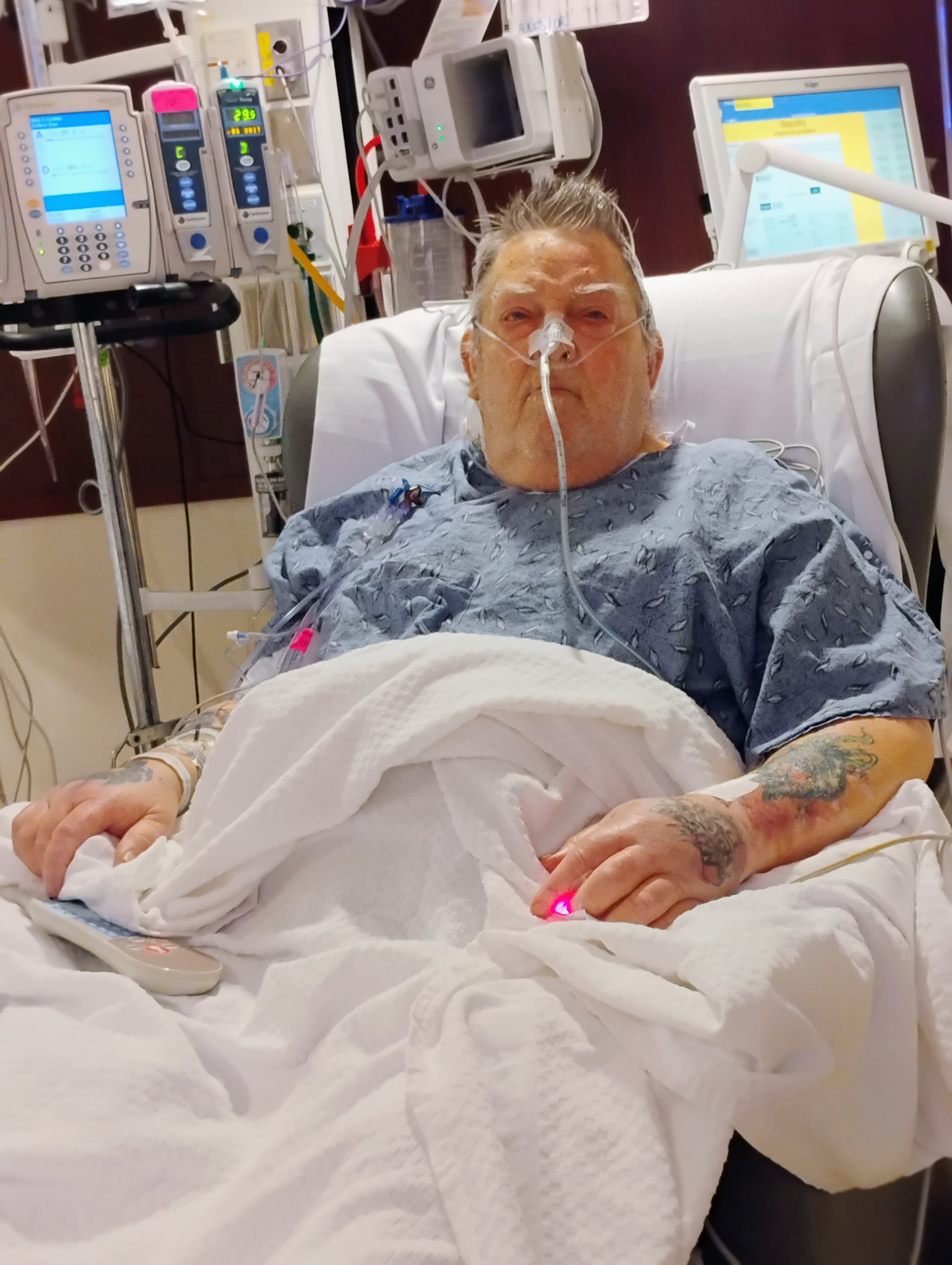 Toward the end of February, my husband Donald became very sick. My daughter Gina was able to convince him to be seen as he was being stubborn and didn't want to go to the hospital. The doctor told us had we waited one more day, Donald would no longer be with us. An illness became Donald's body shutting down leaving him fighting for his life!