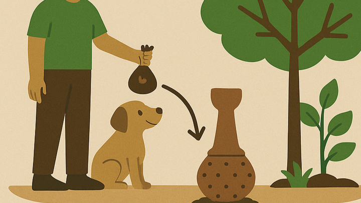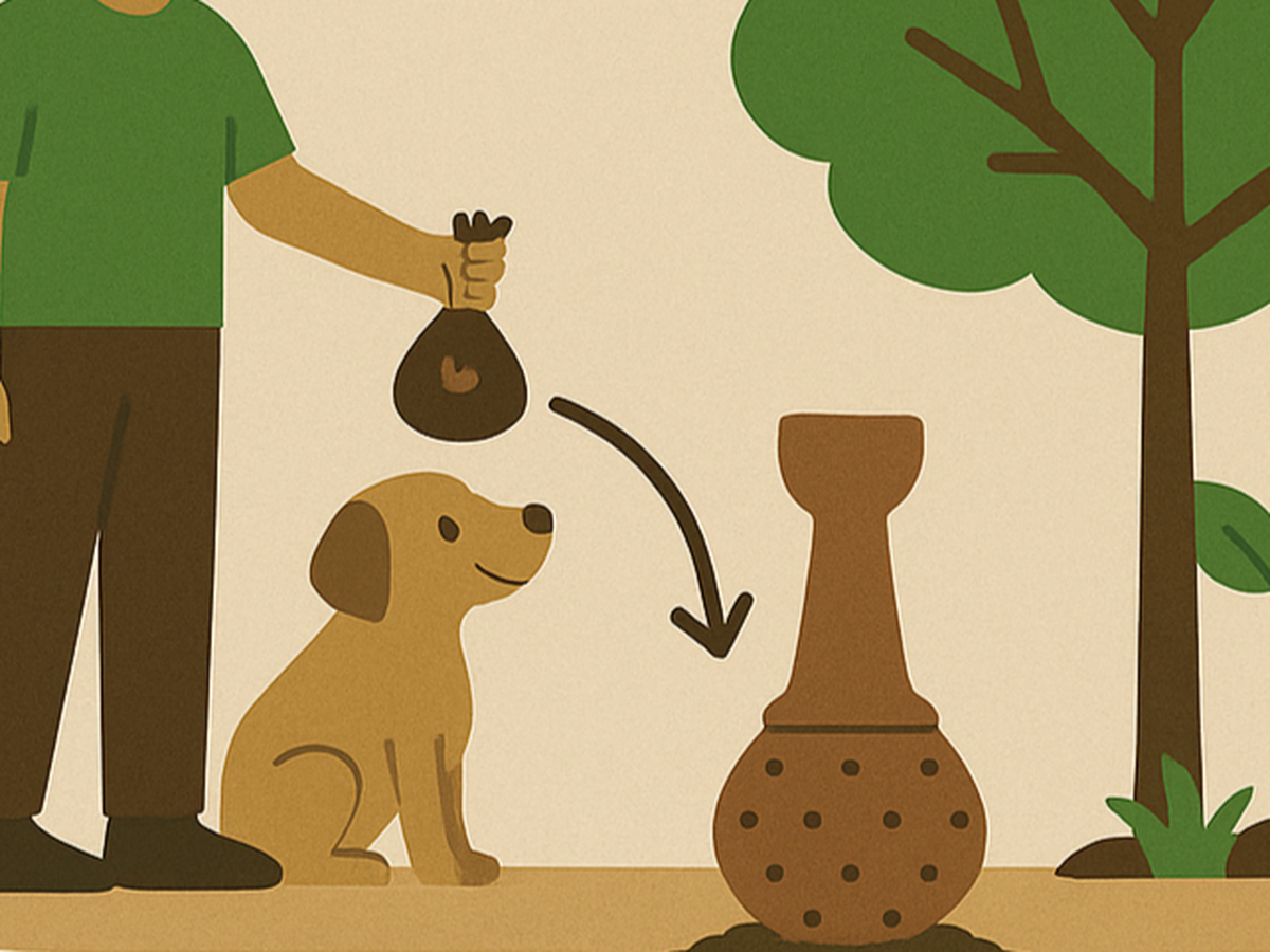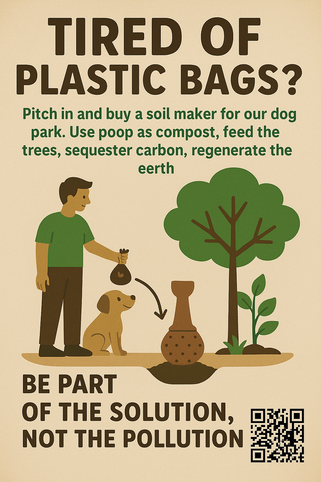 Aren't you tired of picking up your dog's poop, putting it in a plastic bag, then throwing that bag away into the garbage in another plastic bag, where somebody has to drive to a landfill where it will pollute the earth and poison our atmosphere? Us too!!