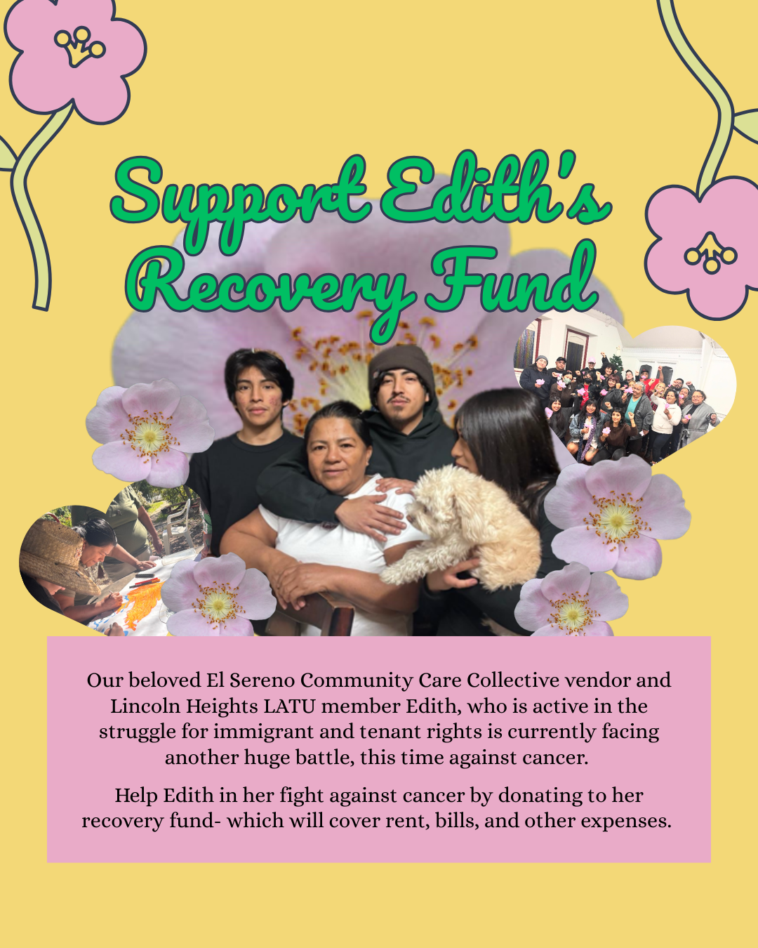 The El Sereno Community Care Collective is sharing a community support campaign for one of our beloved members and vendors, Edith!