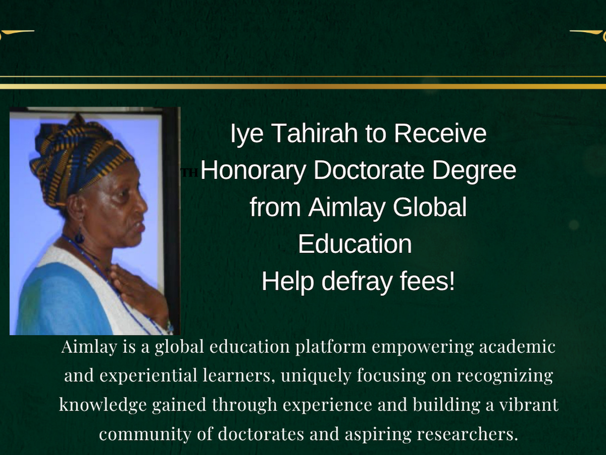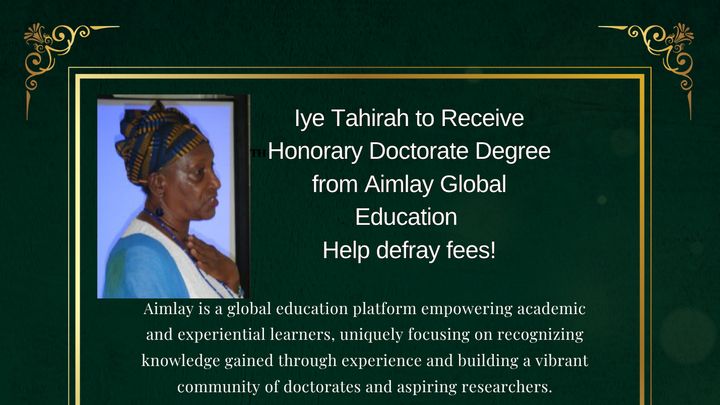 At 87-years of age elder iye Tahirah AbuBakr is paused to receive a honorary doctorate degree from Aimlay University. Aimlay is a global education platform empowering academic and experiential learners, uniquely focusing on recognizing knowledge gained through experience and building a vibrant community of doctorates and aspiring researchers. Iye Tahirah was chosen because at 87-years of age she continues to serve others, especially the emerging generations with the necessary tools to shape a culture of peace. For more than fifty years she has dedicated herself to uplifting humanity through African and Native American traditions. Her background and experiences are extensive in the areas of counseling, applied anthropological research methods and techniques, as well as teaching & training, and service to adults and youth.
