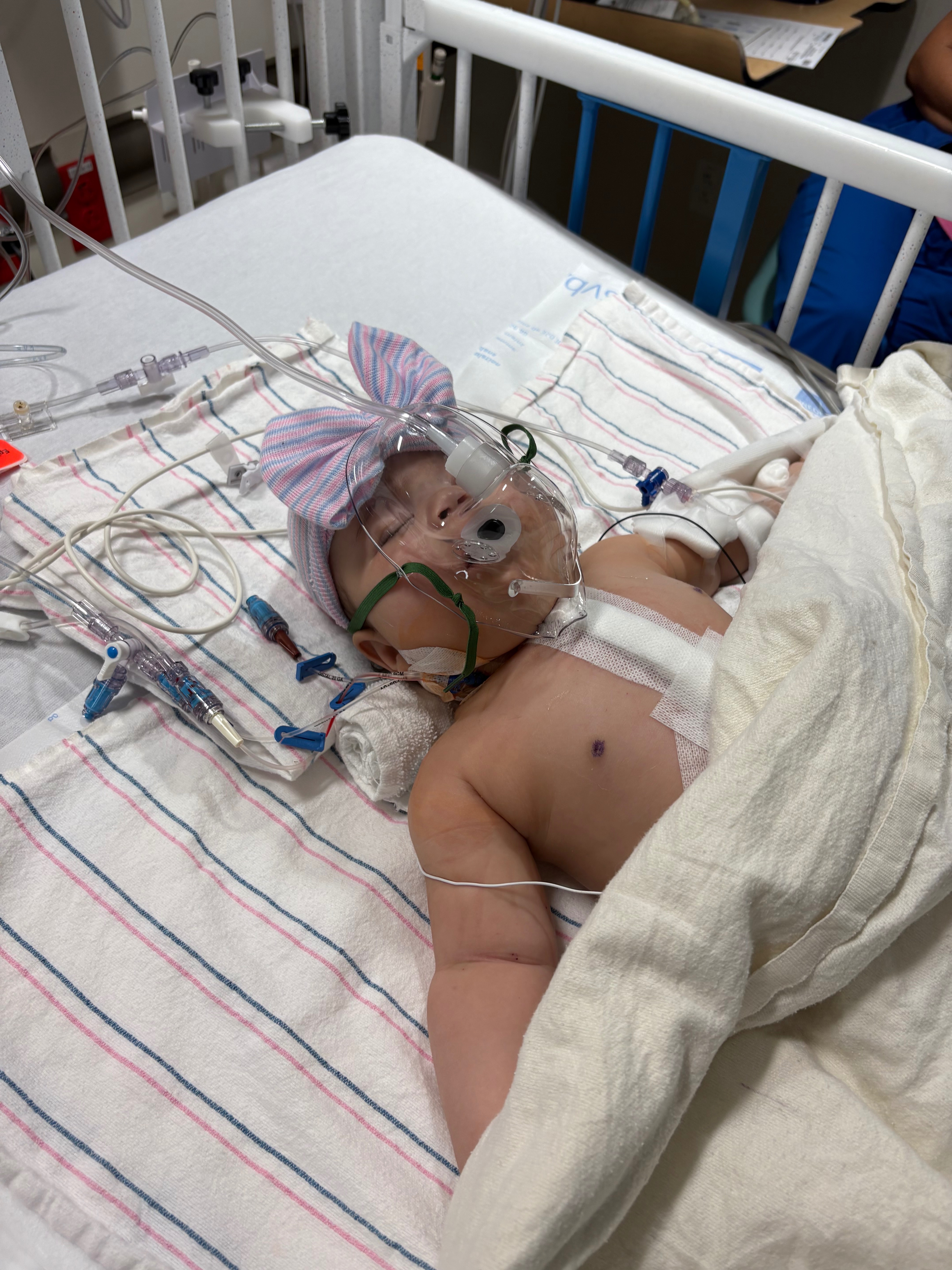 When Eliana was born on September 10, 2024, we already knew she had a serious heart condition called AVSD (Atrioventricular Septal Defect). From the moment she arrived, she fought hard. She spent her first month and a half in the NICU, where she underwent surgery to have a G-tube placed because feeding on her own was too overwhelming for her little heart.