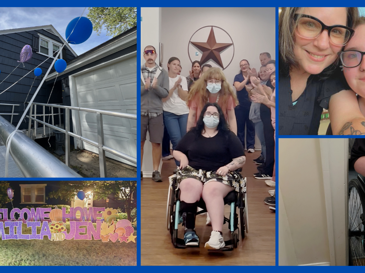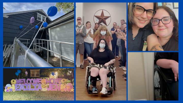 Emilia and her mom (Jen) have been at an inpatient rehab facility in Texas since last August and finally returned to their home in New Hampshire on Saturday night. The last time Emilia was in that house, her room was upstairs. There were no handles in the bathroom. She wasn’t in a wheelchair and there was no ramp outside her home. She could speak clearly and use her right hand. Emilia had a job and was going to college. Everything is different now.