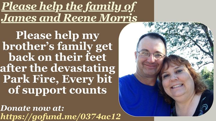 My brother and his family recently lost their home and ALL personal belongings in the Park fire that is still actively burning in Northern California. Unfortunately due to the increased fire risk in Northern California they were not able to obtain fire insurance. This is devastating for the family, as they were informed structures and belongings would not be covered. A lifetime of work, gone in the matter of days. We are asking for your support, any help would be greatly appreciated as they look to rebuild their life.
