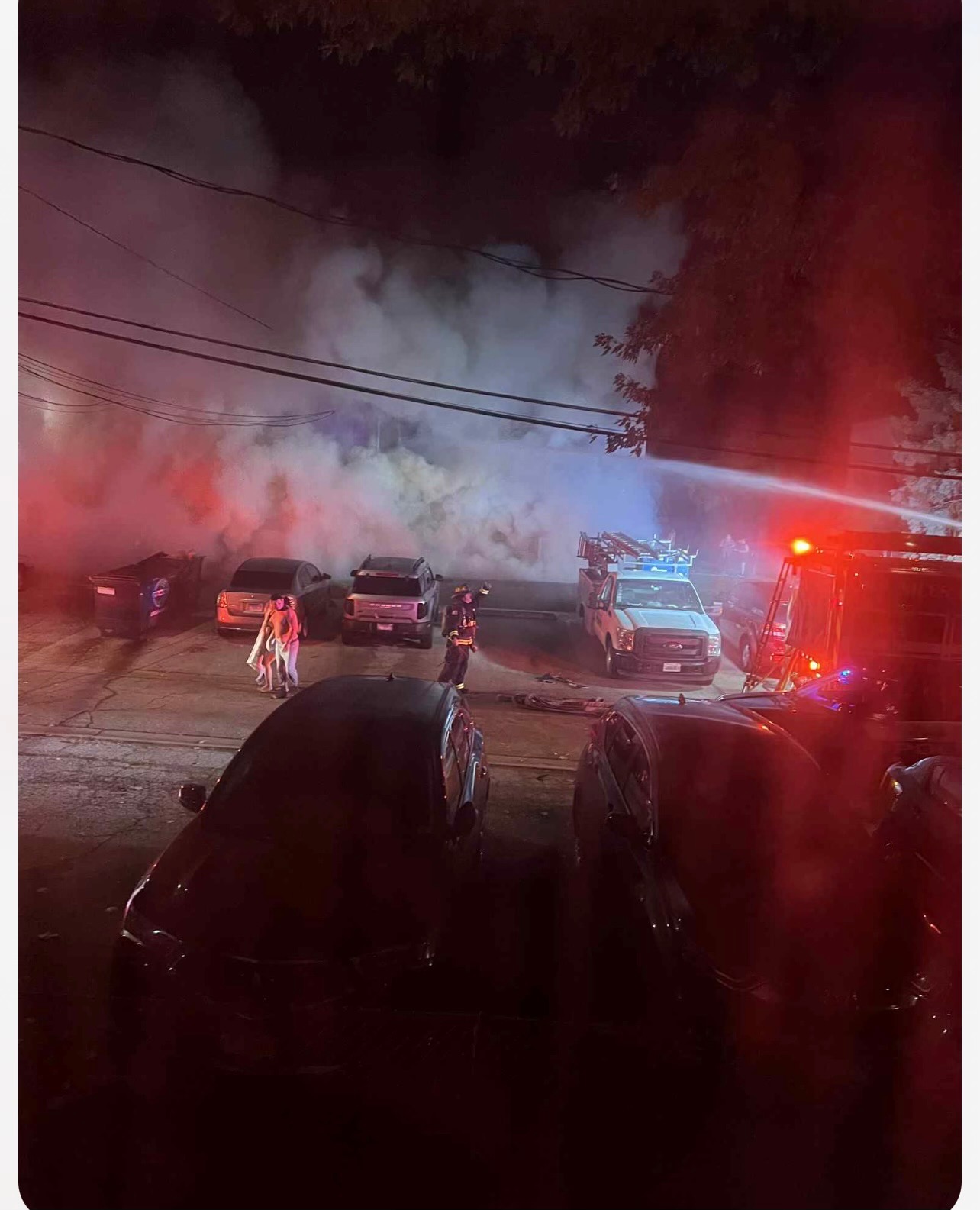 En la madrugada del día de hoy 12 de noviembre , nos despertaron las alarmas de incendio , gracias a dios pudimos salir ilesos del apartamento, pero desafortunadamente fue perdida total debido al incendio en una de las habitaciones .