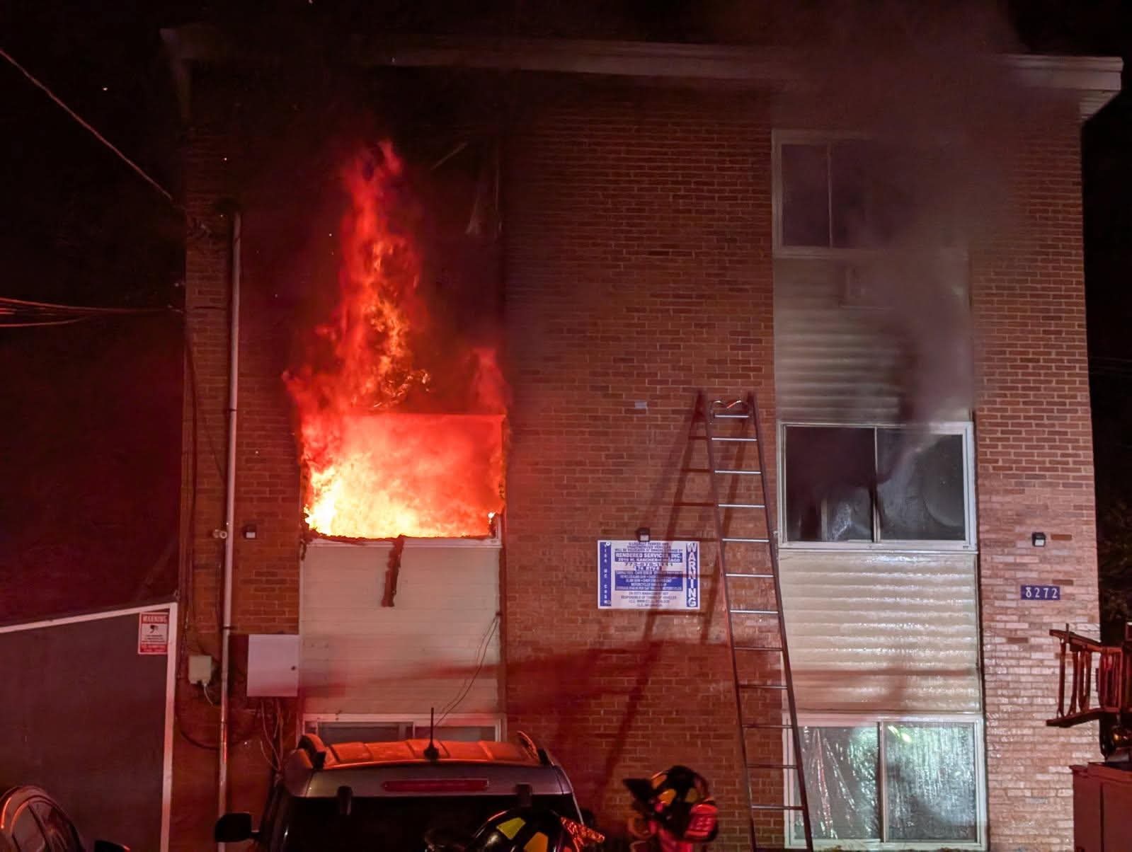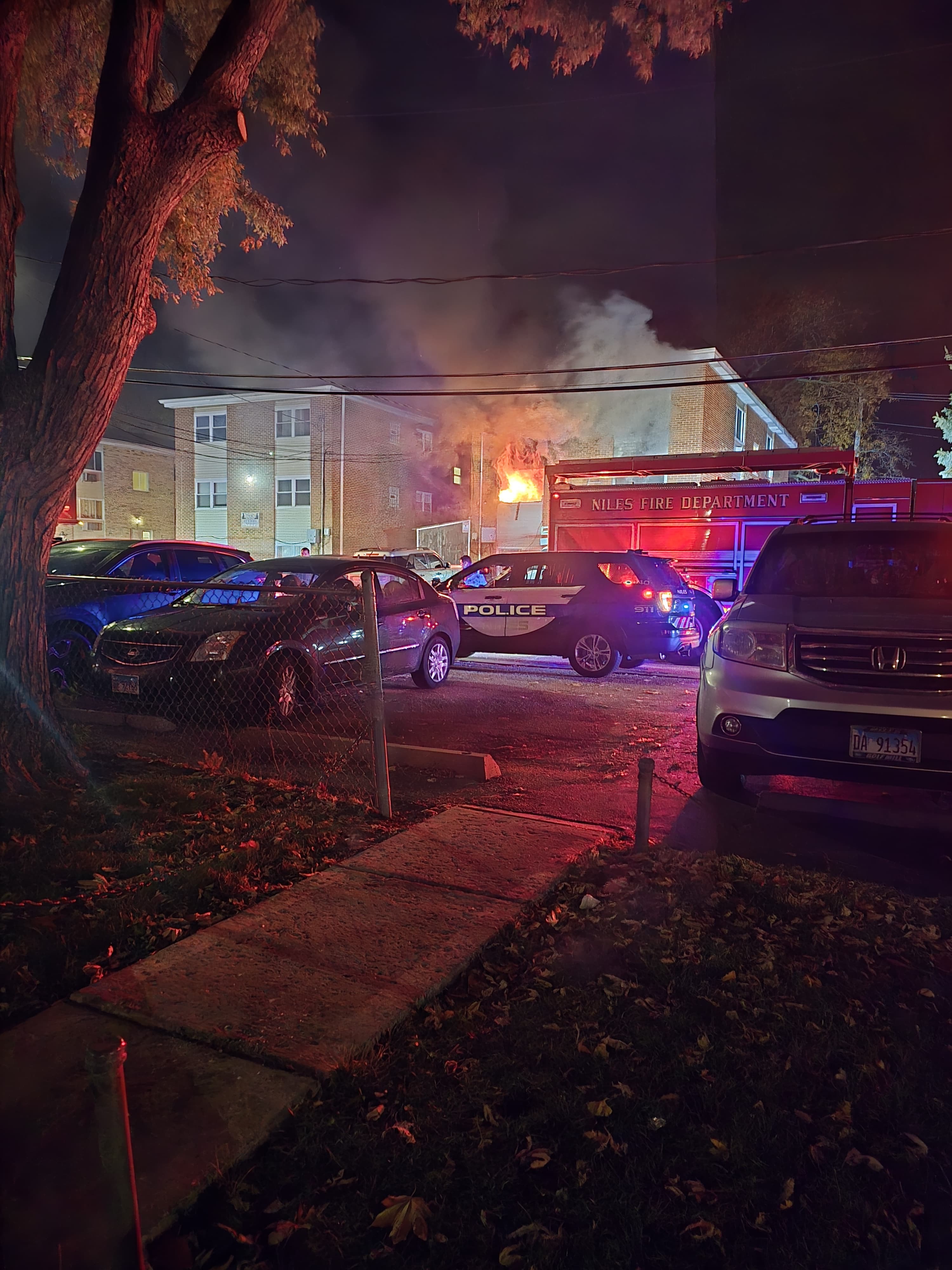 Early this morning , November 12th , we were awakened by fire alarms. Thank god we escaped the apartment unharmed , but unfortunately , it was a total loss due to a fire in one of the bedrooms .
