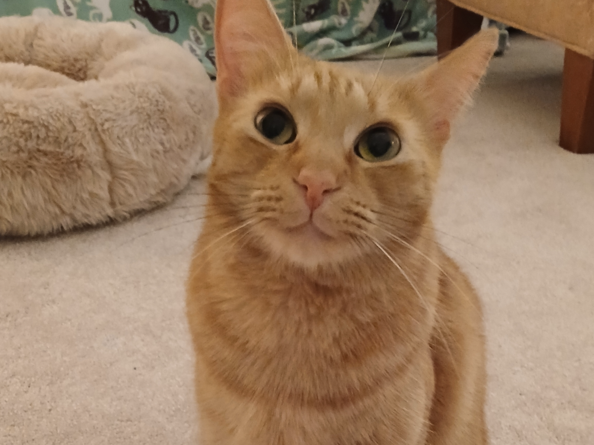 Back in 2023, a gray tabby known as Boots, was struck by a car in my workplace parking lot and suffered a severe leg injury. I saw him struggling and called a local rescue. Luckily, we were able to save Boots but his leg had to be amputated. He recovered and I found him a loving home with a co-worker where he is thriving today. After this incident, I learned that there were 5 other abandoned cats suffering in the lot with no adequate food, shelter or clean water source so I set out on a mission to rescue all of them! I slowly worked on befriending each cat in preparation for rescue. While they remained in the lot, I maintained them the best I could with wet food, water, dewormer, Revolution and temporary shelters. Clooney, a beautiful female calico, was living under a bush by the employee entrance for many years I was told. The day I placed her in a carrier and took her home was an emotional one for me. Testing at my vet revealed she was suffering with hyperthyroid disease and evidence of mast cells. No one wanted to adopt her, so I gladly did. She was hospitalized for a short time but she is now receiving the treatment she needs and is enjoying a well-deserved retirement. My next rescue was Julius, a 7-month-old ginger. No one wanted to adopt him because has FIV, so I did. He is my happy little boy now, my pride and joy who never stops smiling. By the end of 2024, I was able to rescue Biggie, a meek 7-pound tabby with big feet. She and I developed a special bond so I adopted her too. Clooney, Julius and Biggie are happy, healthy cats today. They have no cares in the world and they rest their heads each night in safe, warm beds instead of the dirt under prickly bushes and cars in constant fear of predators and thunderstorms.