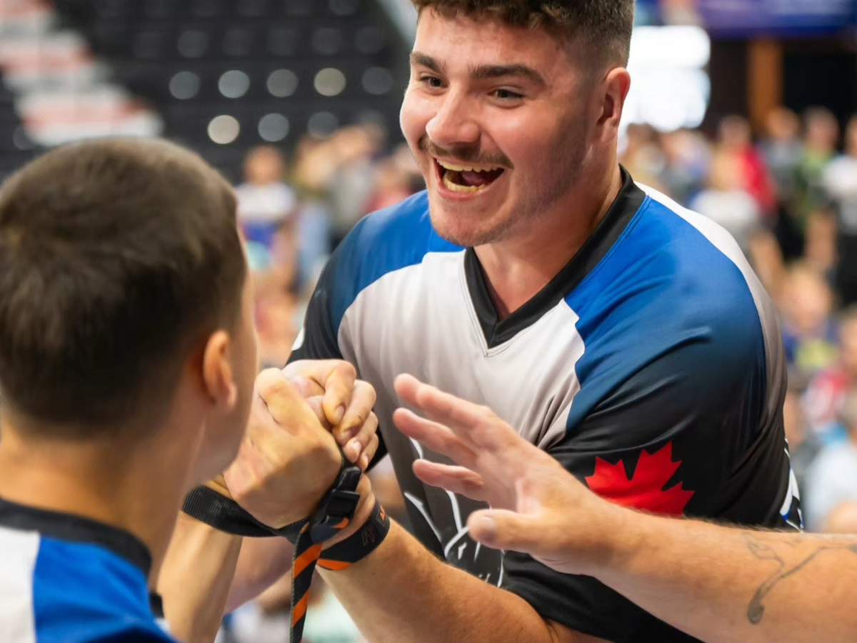 Hello, my name is Étienne Roach, and I am a 20-year-old Quebecer who has been practicing arm wrestling with determination for ONLY 2 years. As a member of the TRAC team from Trois-Rivières, my goal is to reach the elite level of arm wrestling. I already have 2 bronze medals won at the provincial championships last April. Furthermore, I managed to place 5th at the national championship on June 30, 2024.