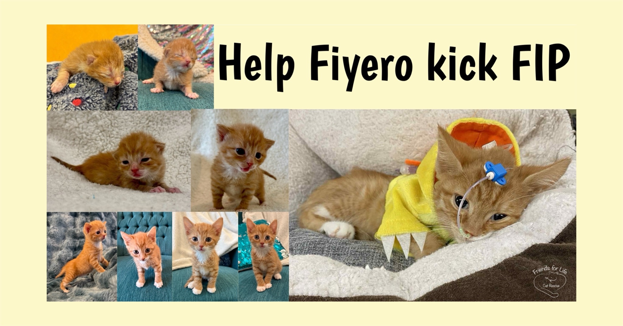 Fiyero’s road is more arduously challenging than many other cats who develop FIP. He had more severe complications because he developed FIP at such a young age. As he was such a little guy, Fiyero didn’t have the fat stores that older cats have when they start to develop symptoms. So when he went downhill, he went downhill fast, requiring emergency intervention. Thankfully, FIP treatment is much more attainable and affordable than it used to be. But for him, the costs are adding up quickly and can strain the budget of a small rescue like ours. We need your help to fund this life-saving treatment. Any donation is greatly appreciated. Anything raised beyond the costs associated with Fiyero’s treatment will be passed along to the other cats and kittens in our care who will require help in the future.
