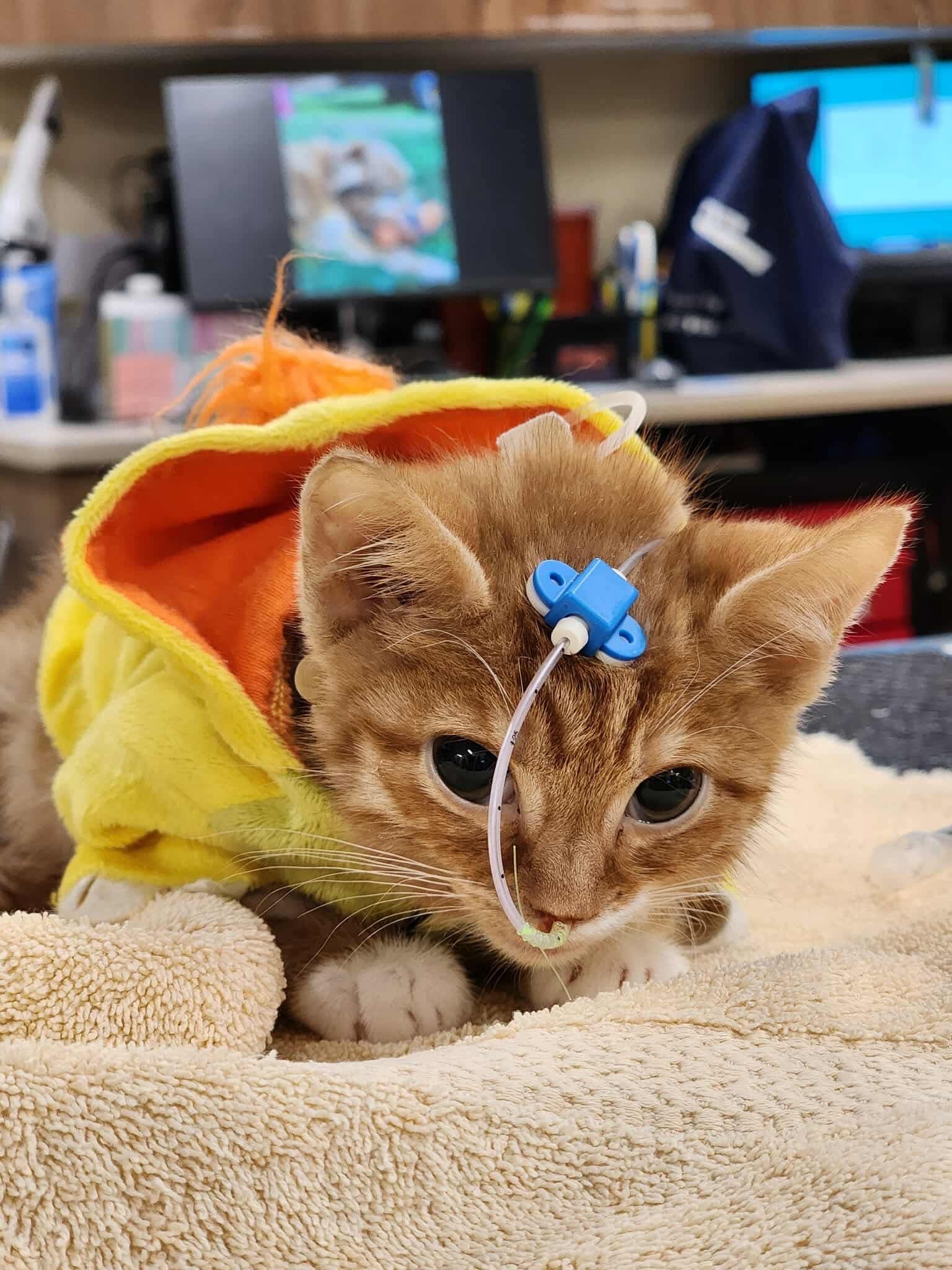 Sweet little Fiyero was dancing through life, as any growing kitten should be, when suddenly he was struggling just to put one paw in front of the other. He was rushed to the emergency room where his outlook was really quite grim. Upon consultation with another, and very special, vet, it was decided to bring him to her on the chance that she could help save his life.