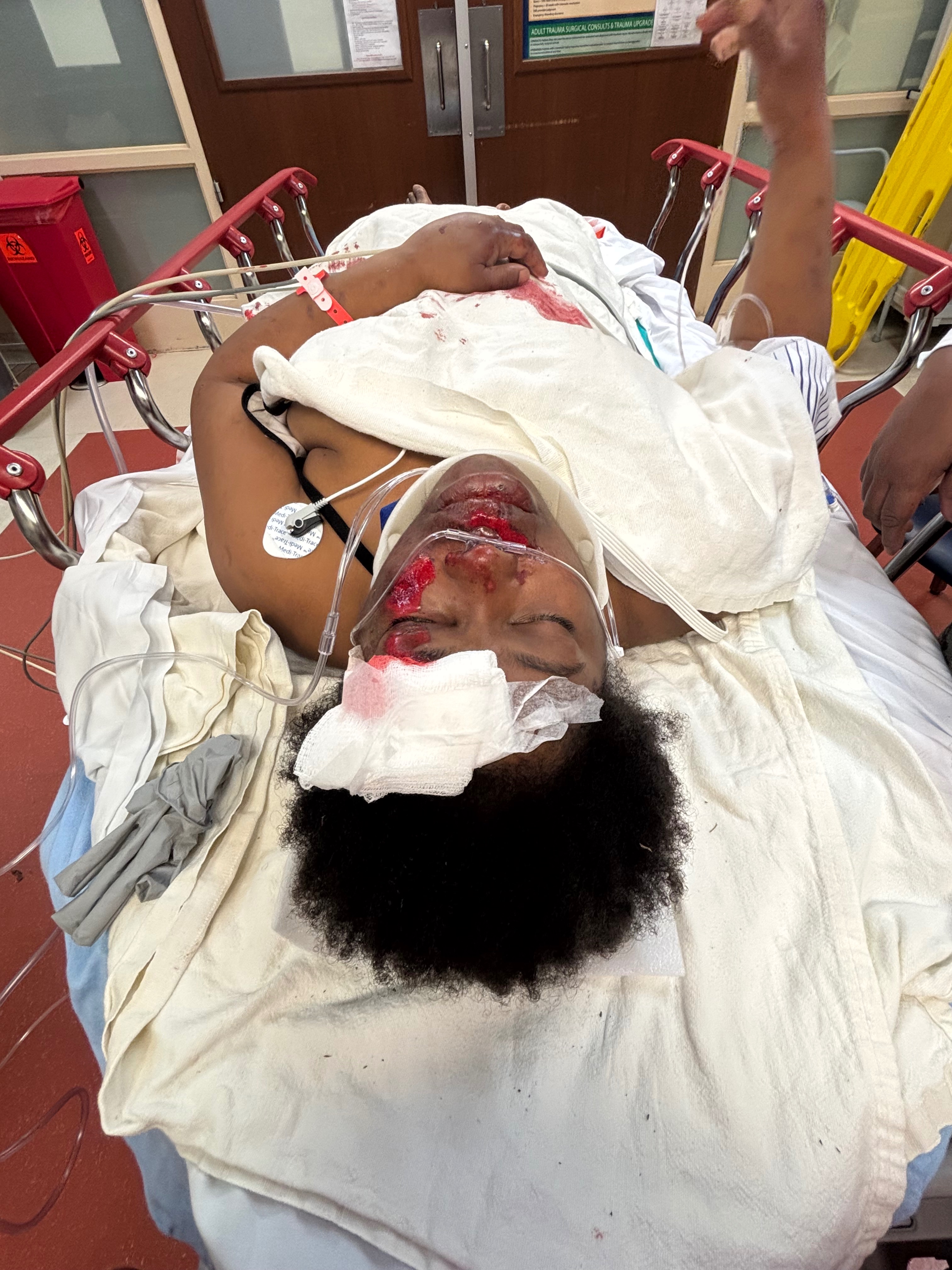 She was thrown more than 300 feet, and the injuries she suffered are severe and traumatic. She has fractures in the back of her skull, head trauma, multiple fractures in her face and around her eye, multiple fractures in her hand and fingers, and extensive road rash covering her back and legs. She is now facing a long and painful recovery.