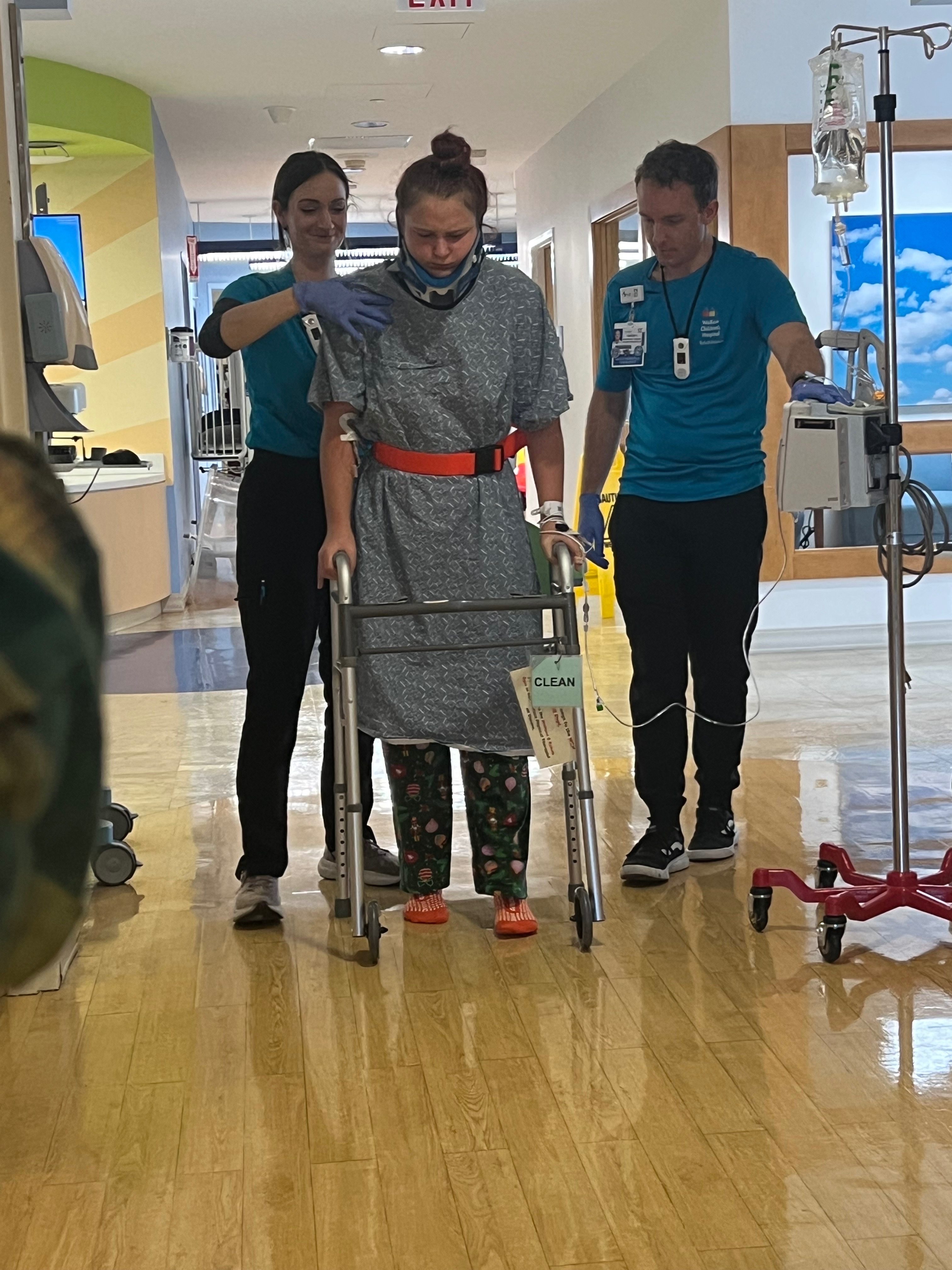 As a result of the accident, Addy was diagnosed with a spinal concussion, a serious injury that has caused paralysis and significant weakness on her right side. She is currently hospitalized, and at this time there is no plan for discharge as doctors continue to monitor her condition, doing inpatient pt and ot. When she is able to leave the hospital, she will require inpatient rehabilitation to begin intensive therapy needed for her recovery.