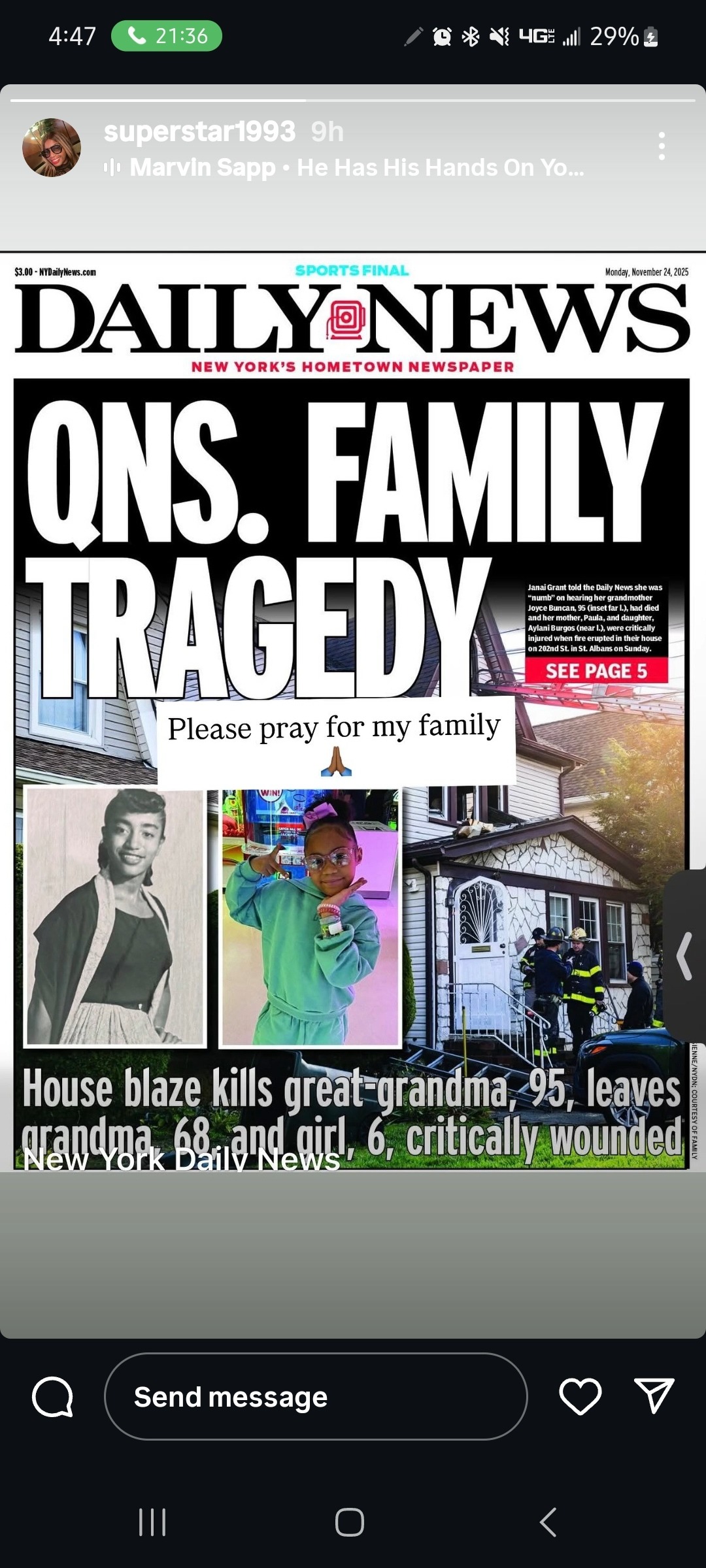 On the early morning of Sunday, November 23rd, 2025, 6-year-old Alani was spending the night with her grammy and great grammy. Instead of waking up to the comforting smell of a Sunday breakfast, Alani and her family awoke to darkness, ferocious flames, and thick, suffocating smoke. The three family members were rushed to the hospital in critical condition. After a courageous five-day battle, Alani was taken off life support and now joins her great grammy, who also passed away from complications due to this horrific incident.