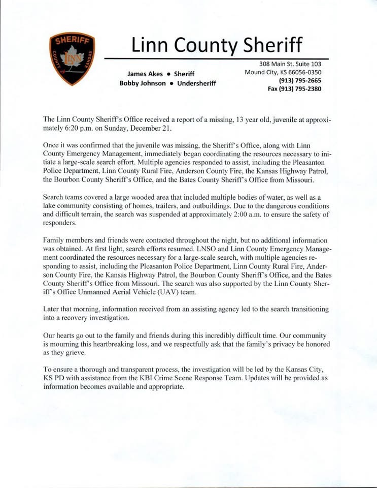 A Sunday that began like any other in Pleasanton, Kansas, turned into a nightmare for Anita Gunn and Charles “Jody” Andula. Their 13-year-old son, Airen Andula, went missing in the afternoon, sparking a massive search across rugged woods and ravines that stretched into Missouri. The entire community held its breath, hoping for his safe return. Tragically, Airen’s body was found the next day. Authorities have charged a suspect with abandonment of a corpse, and the investigation continues. The heartbreak of losing a child in such a way is unimaginable, and Anita and Jody are now facing the most difficult days of their lives.