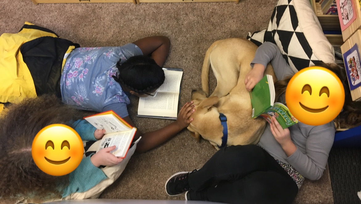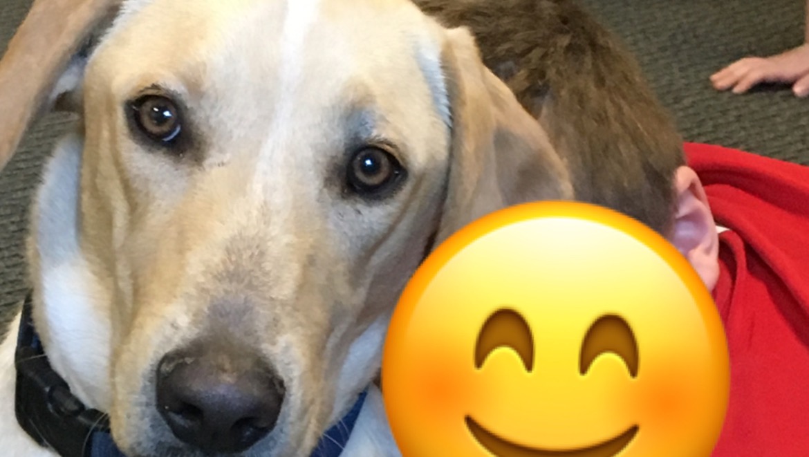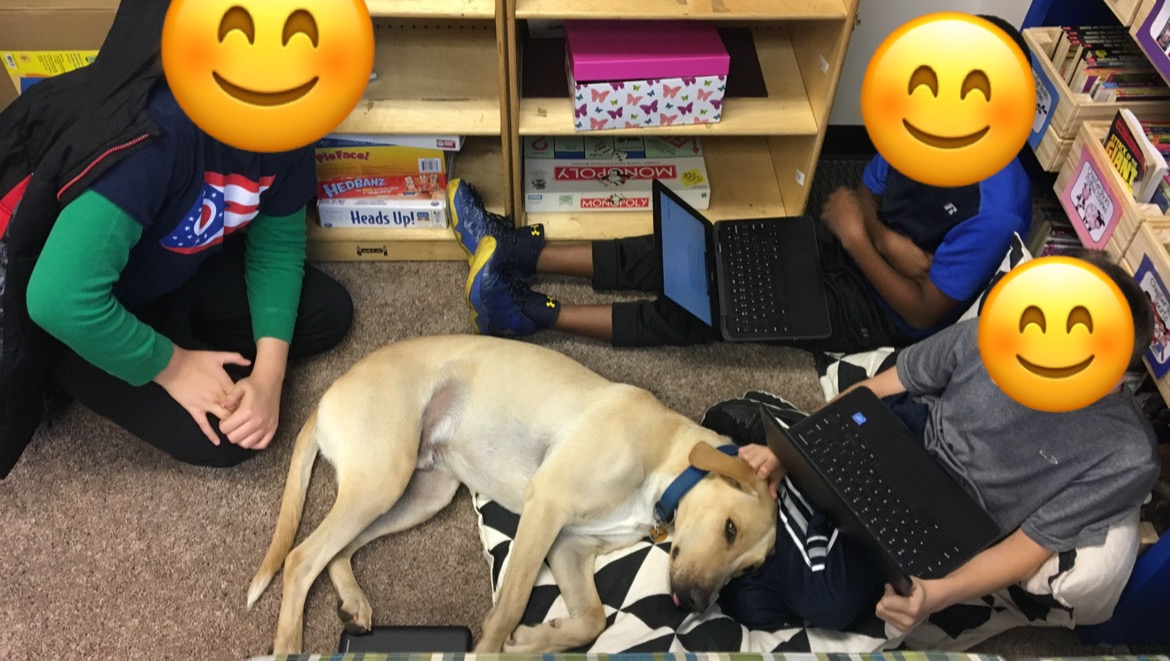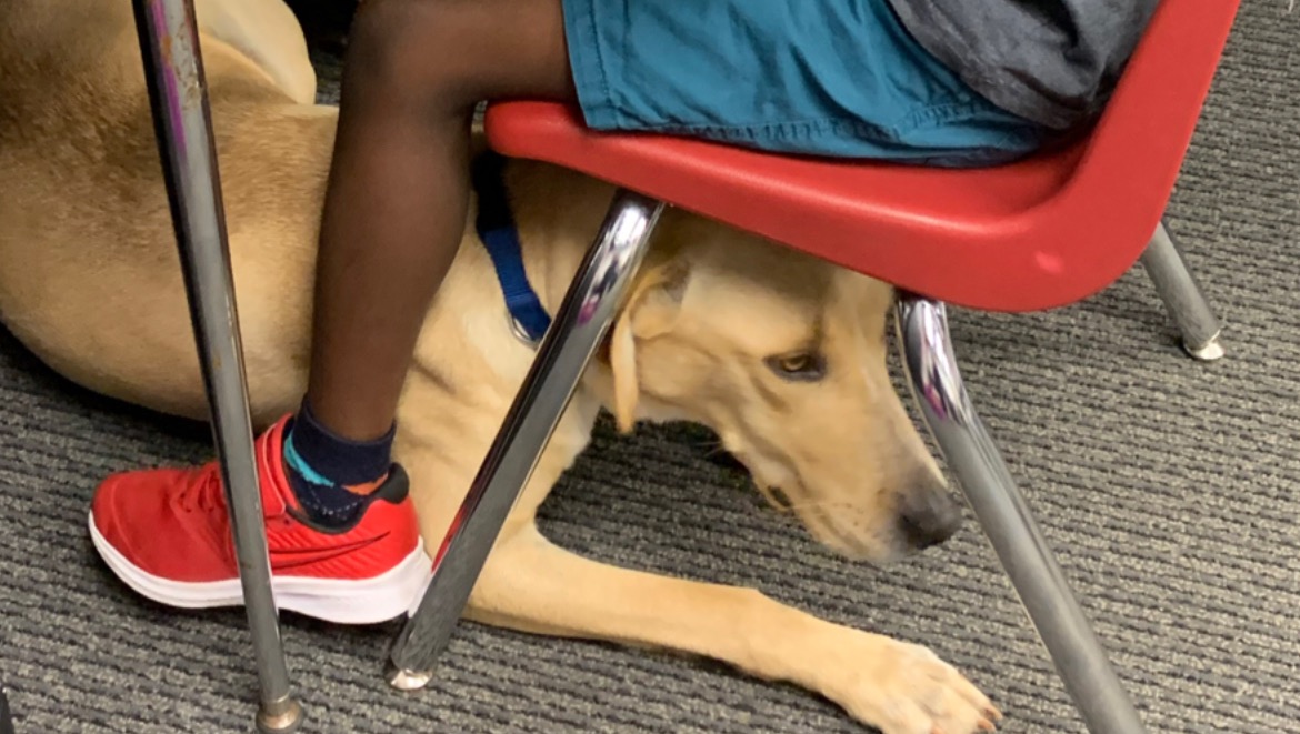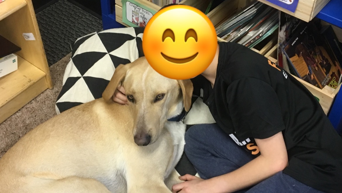 Barkley is a therapy dog at our school. We teach at a school that helps students with ASD (Autism Spectrum Disorder). Barkley loves to come to school each day and help students when they need some extra love, as well as helps calm them down when they are overwhelmed.