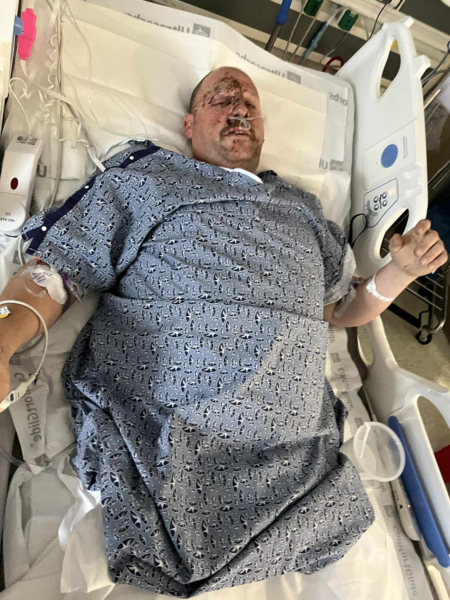 Hello, my name is Brooke. My fiancé ( Nick) was hit by a truck last Tuesday. He was standing in a driveway when a truck hit his physical body. Now, by the grace of God, he survived, but he is really messed up. He is still currently in the hospital, and although he has made little progress, he has a long road ahead of him. He suffered a lower back fracture, a broken orbit in his right eye, multiple face fractures, his whole right side of his body has road rash, three fractured vertebrae, fractures in his left foot, and fractures in his pelvis area as well. Anyone that knows him knows he is full of life, and to see him laying there, very rarely waking up, is heartbreaking., They still haven't caught who did this to him, as the truck that hit him did not stop; it took off and left him there lifeless. We have a long road ahead of us, but we will get through this. Now he's not going to be able to work for months, and we don't know what's gonna happen next or when he will be released from the hospital, and the physical therapy after the hospital—everything is still uncertain about what happens next. To top it all off, after he was hit, he was also pickpocketed for his wallet, his phone, etc. We sure could use some prayers, and if you are able to help in any way, we would appreciate it more than you will ever know.