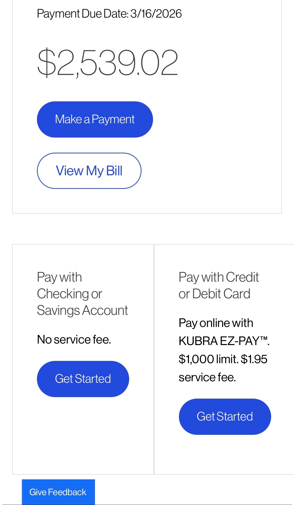 We are currently on the winter moratorium, which is over on March 16th. By that date, we must cover our entire bill, which is $2,539.02.