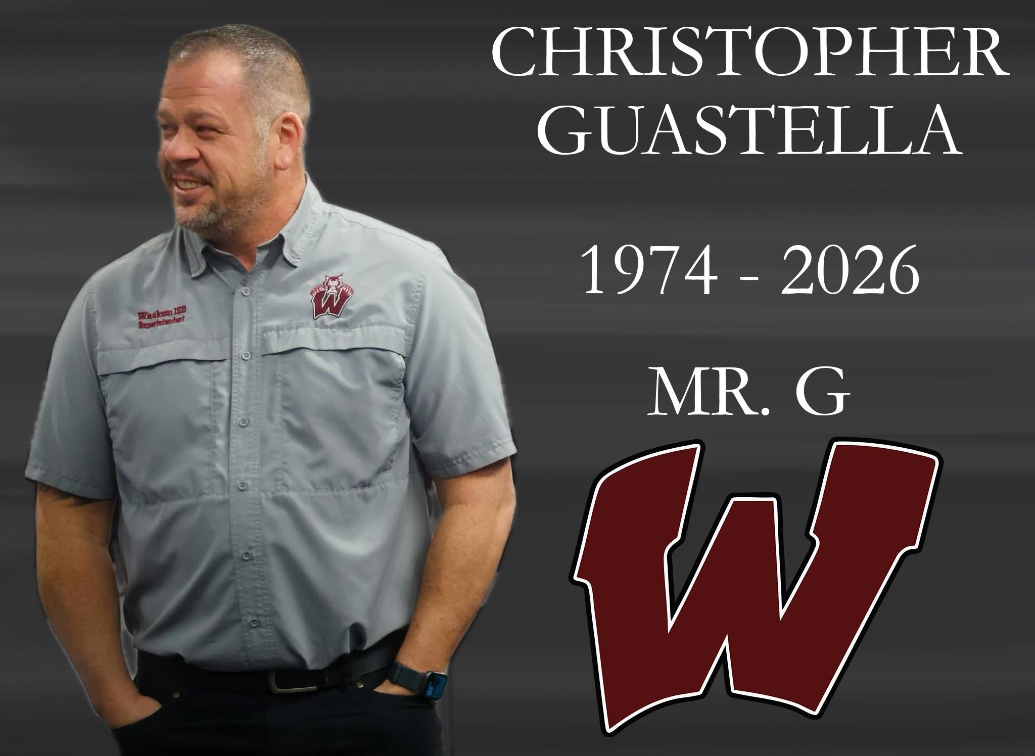 We are heartbroken to share the passing of Christopher “Chris” Guastella. Chris dedicated his life to serving others. After serving in the United States Air Force, he spent nearly two decades in education as a teacher, coach, principal, and most recently as Superintendent of Waskom ISD. The impact he made on students, families, and communities across Texas is undeniable. He passed away unexpectedly on March 21 following a tragic accident.