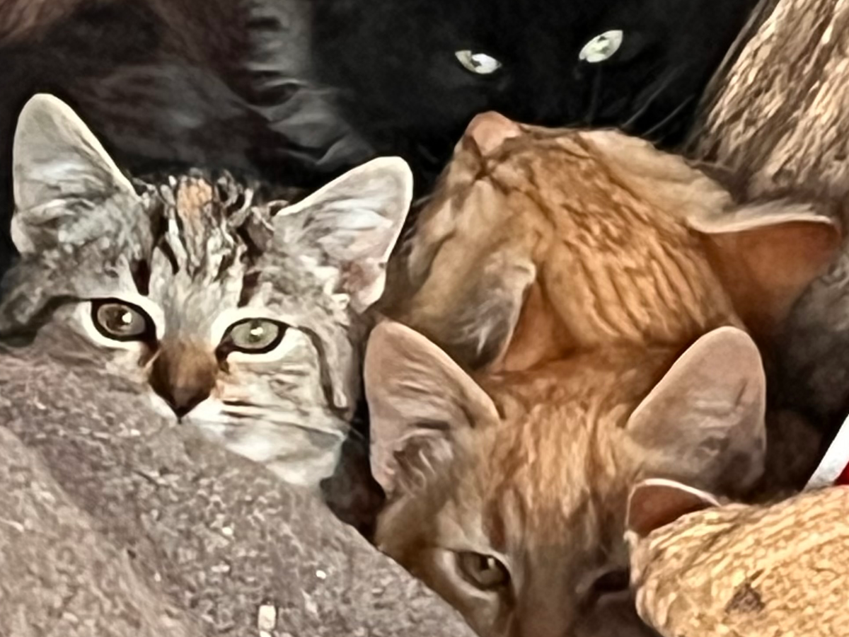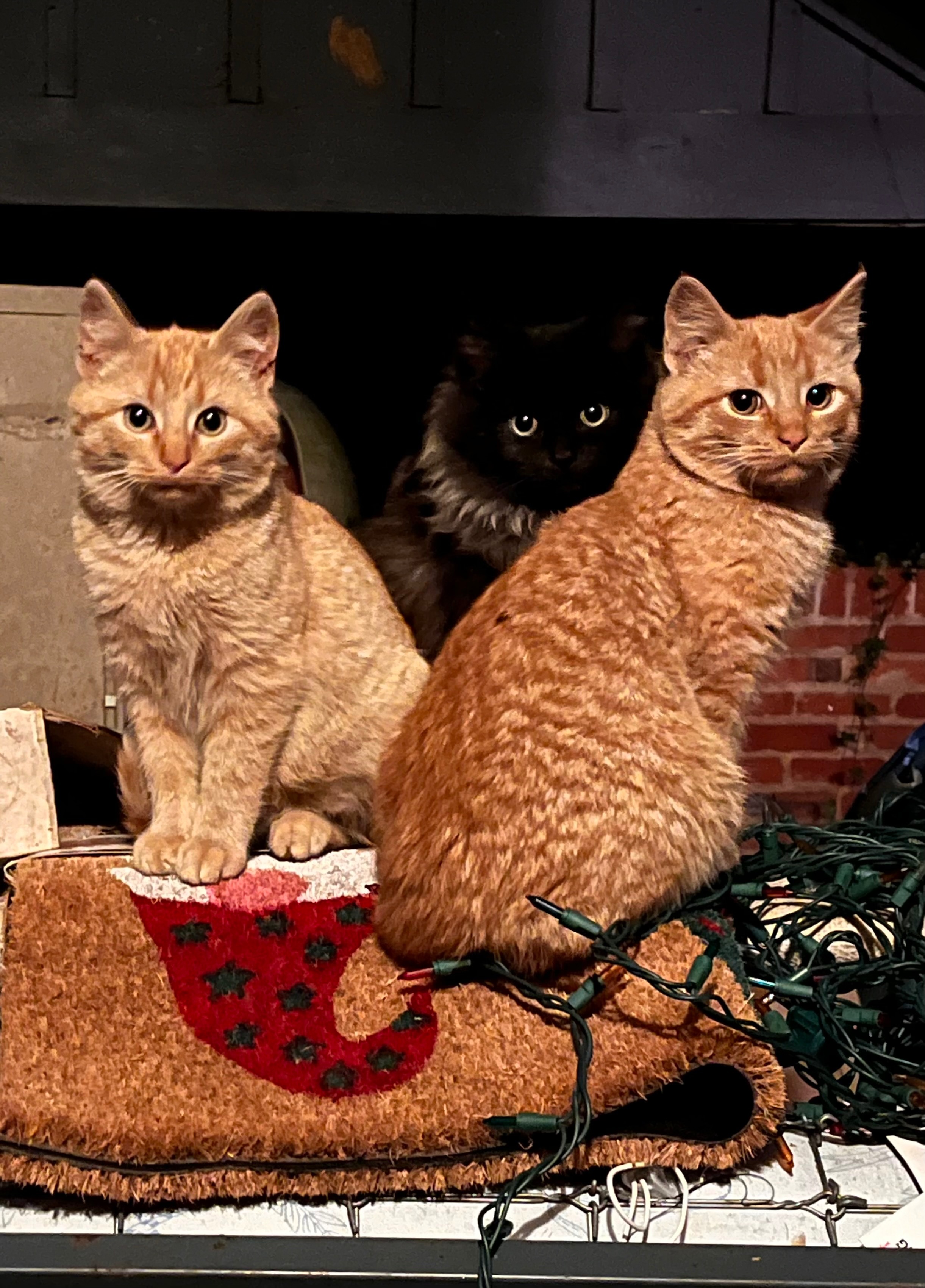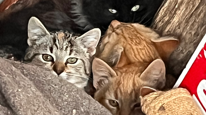 They were born outdoors to a feral mother who brought them to my carport and then disappeared. Over the past month, I’ve been feeding them and working to socialize them — building trust day by day. That time and effort is the reason I was able to safely bring several of them inside before the dangerous weather hits.