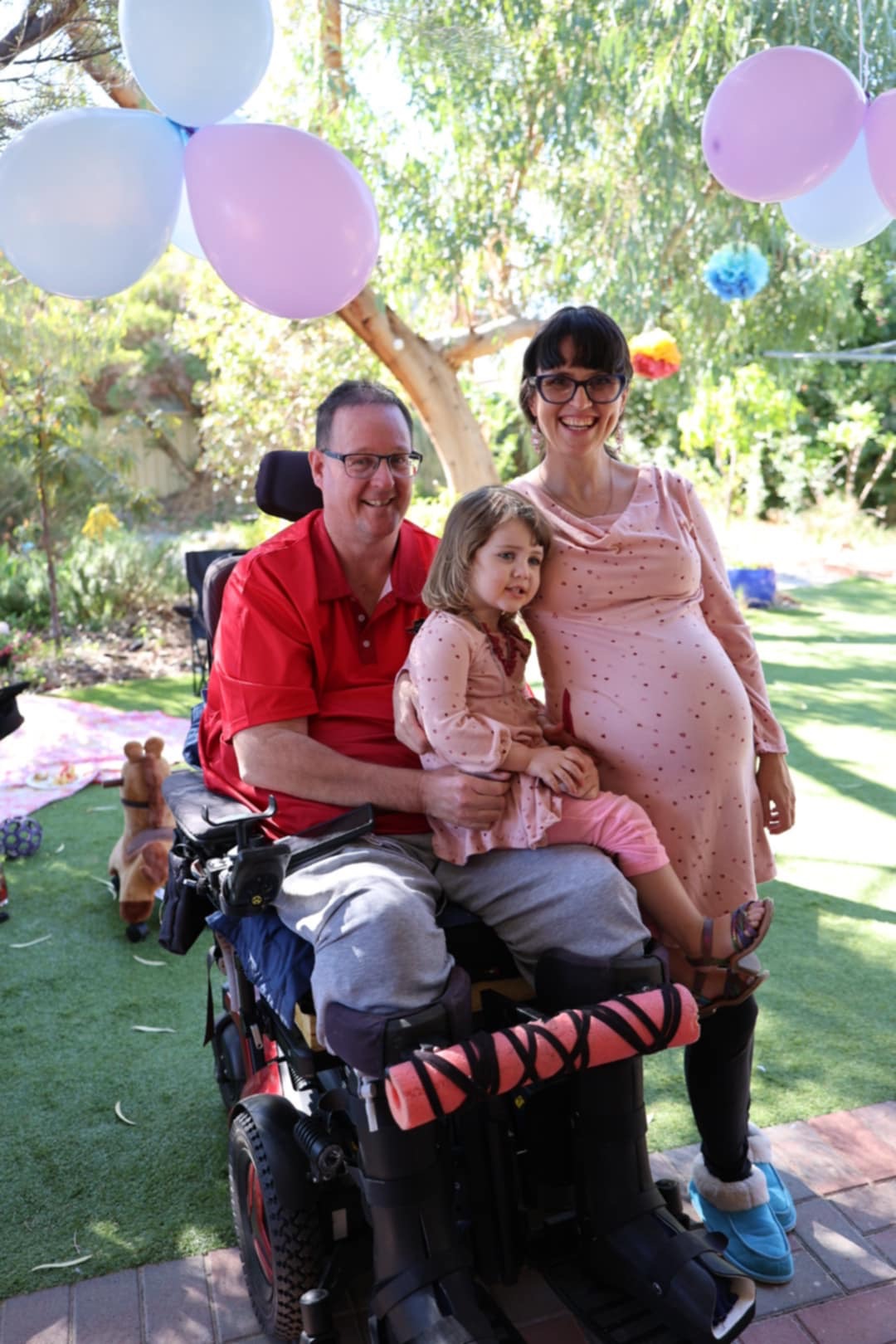 “Hi Im Janet proud wife and carer of Eric, mum of a gorgeous 2yr old and expecting our 2nd in a few weeks. Back in oct 2023 Eric got a pressure wound unfortunately common for quads, we fought for over 12mths Fiona Stanley and royal Perth who refused hospital admission contrary to multiple senior plastic surgeons recommendations that it would never heal without corrective surgery. Finally January 2025 our wonderful local MP helped us get the required surgery and for the first time since her 1st birthday daddy was finally out of bed to play with his 2.5yr old daughter. Healed in a record 43 days despite removing bone, moving tendons and 73 staples and over 20 stitches later.