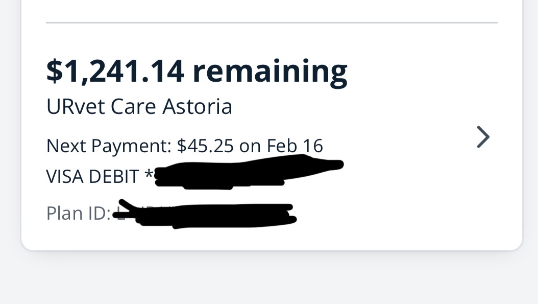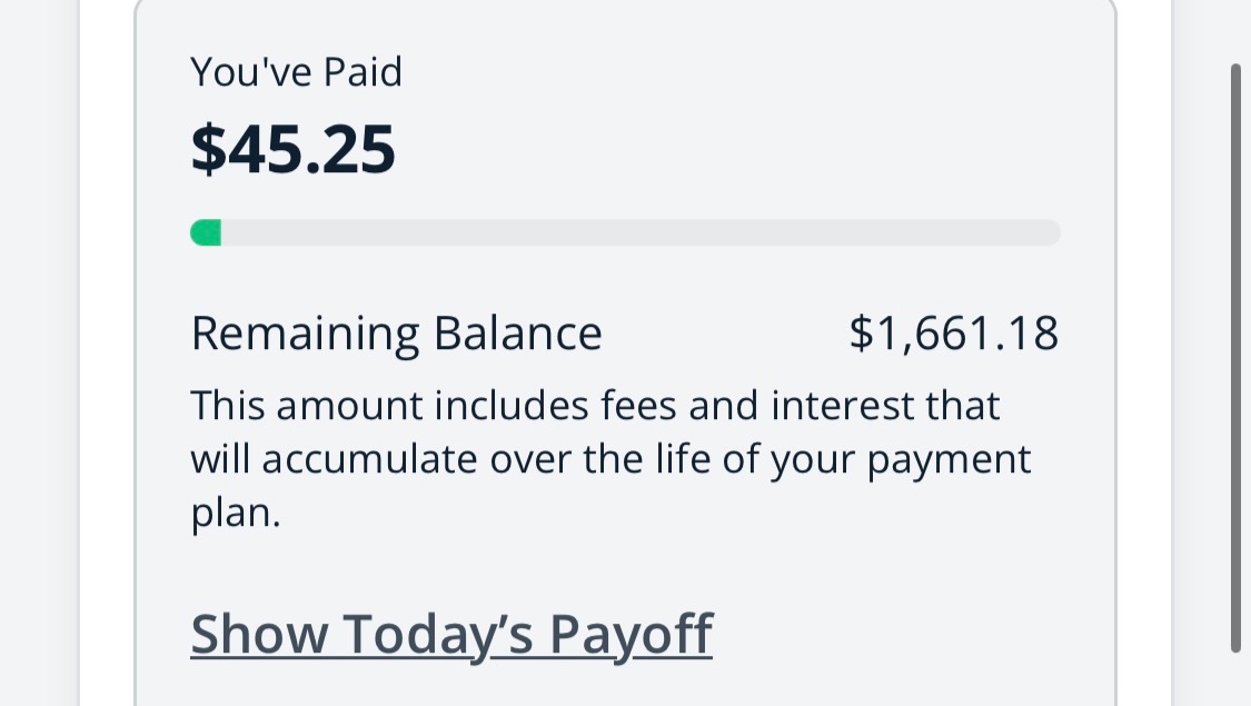 Thanks to companies like Cherry and CareCredit I was able to get on a payment plan , which I've done for my own health when I've needed to. However, to be totally transparent, the plan I'm on (which is the least expensive option) is still going to put me in the negatives each month, and will take me 3 years to pay off. (See photos below.)