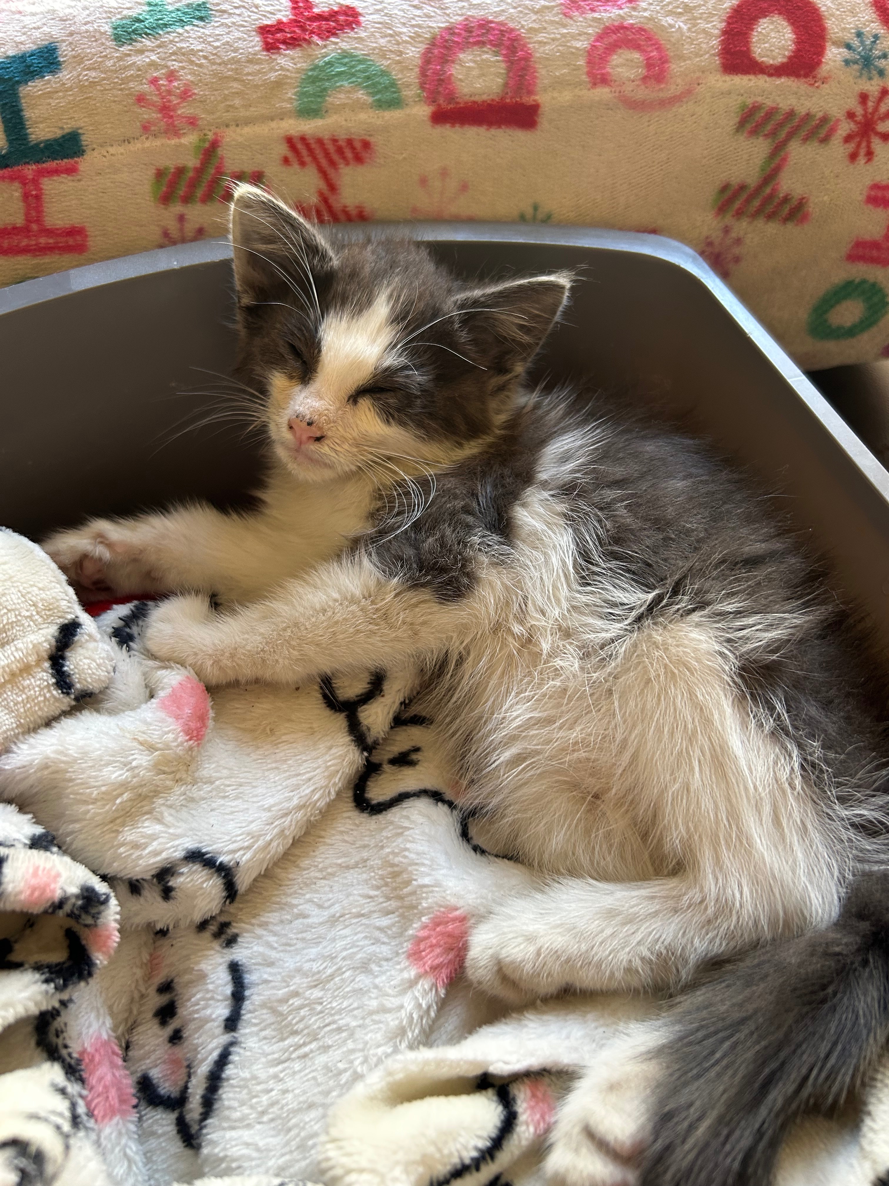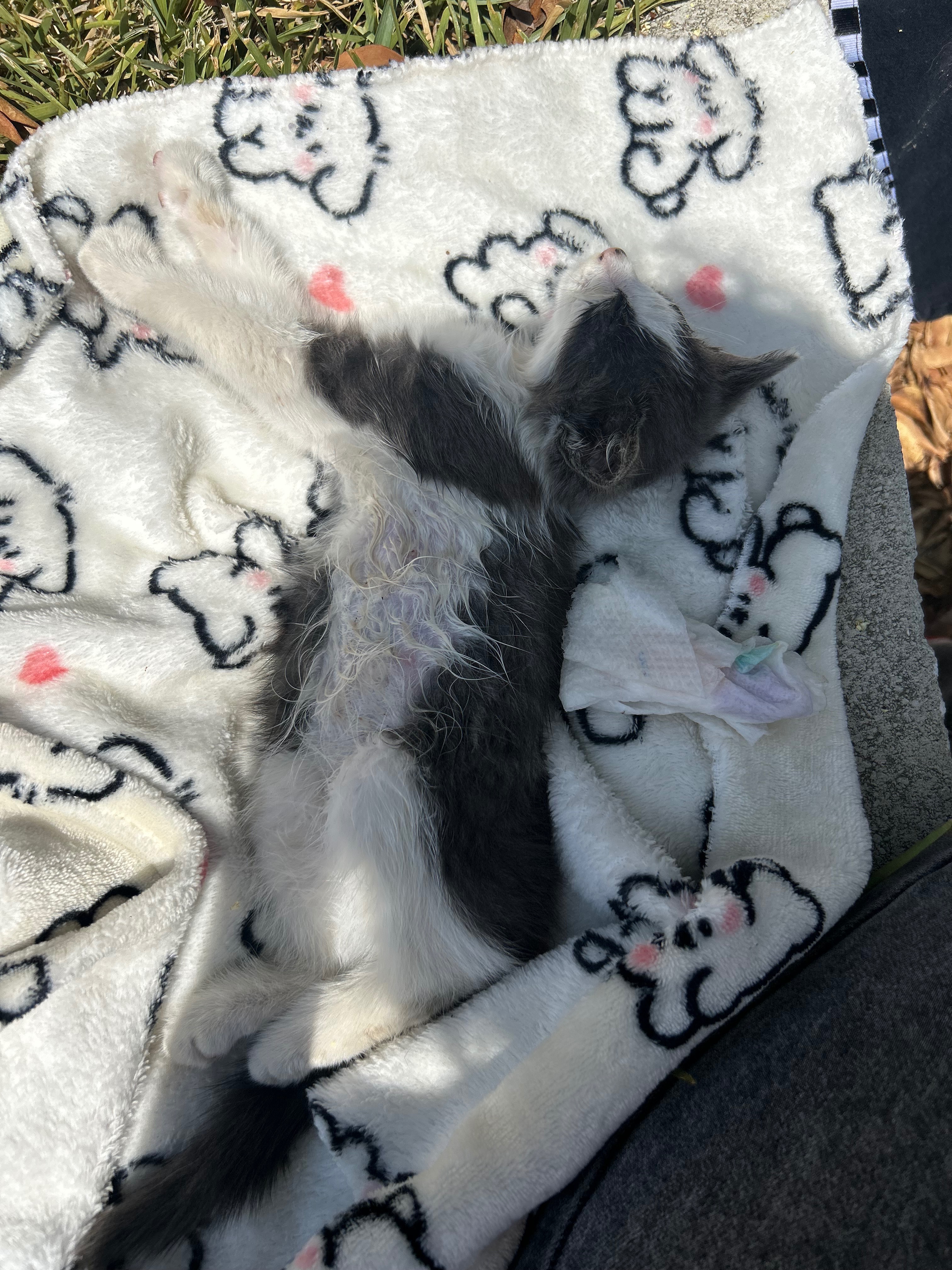 Hello! My name is Valeria. I am starting this fundraiser to help this kitty. On June 24th, this kitten was brought to our house unable to move, barely breathing, eyes basically glued shut, and we did not think she would make it. Due to our home situation, we were not able to keep her. However, a very kind person, whom we got in touch with, took her in and was able to take her to the vet and get her checked out.