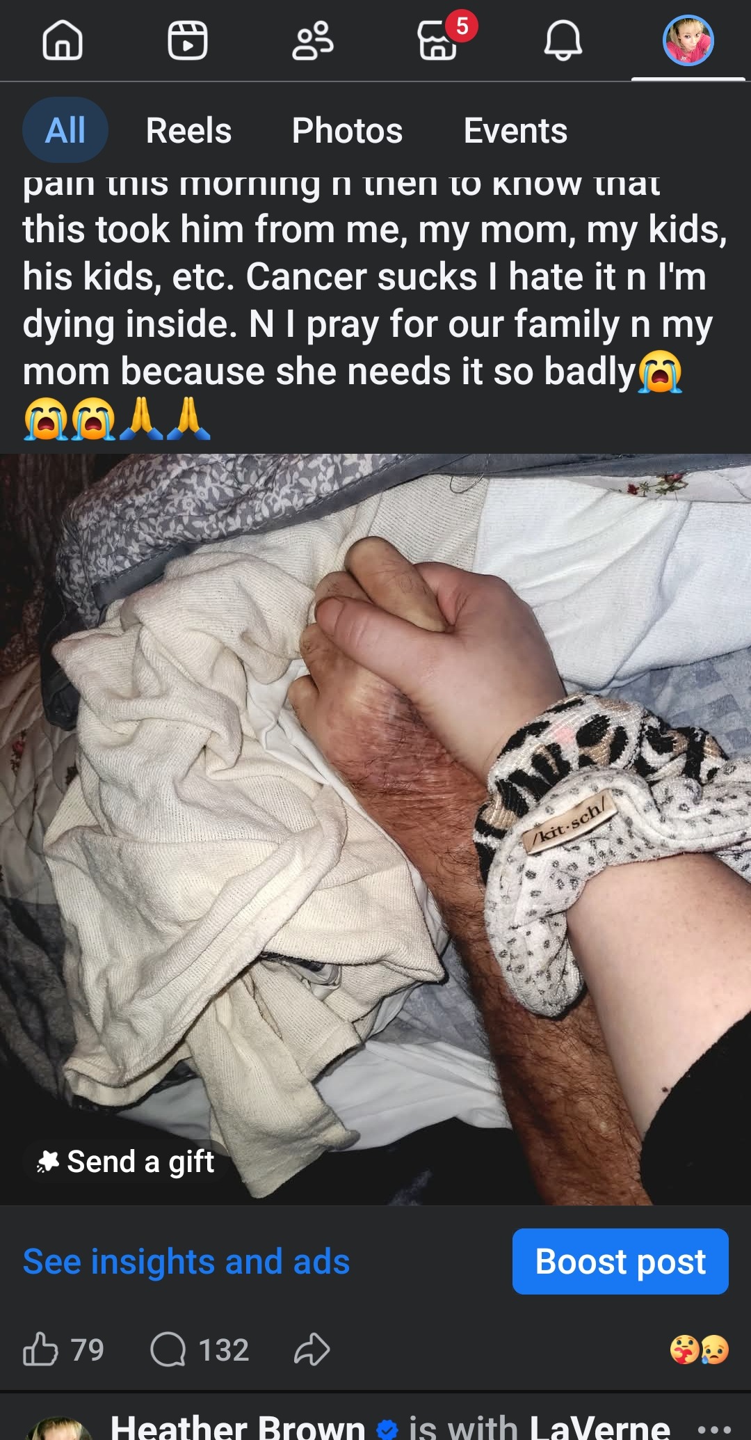 My name is Heather Brown. I am writing this because I am the daughter of Laverne Christner Jr. Sadly, after only a two-month battle of finding out that he had squamous cell metastatic carcinoma, stage 4 cancer, on February 2nd at 10:15 am, he passed away at home. Anyone who knew my dad knew that he was an amazing person. He wasn't in pain in October, and we went for a CT scan, and he was fine. Then we went back in December to do another CT scan, and it was everywhere. At first, they made it seem like there was hope. They had him rushed in to give him an emergency hip surgery because his right hip was shattering. We thought this was good news. When he first got home, he was walking and doing okay until a blood clot ended up forming in his other leg. He kept going to the hospital, and his leg started turning extremely red, and they said it would need to be amputated. They couldn't take the risk of doing another surgery that big. They tried to give him medicine for his blood clot, but it was not getting better, and he finally decided he wanted to come home. He was only home for 36 hours before he passed away. I had told him I loved him, and he said he loved me too, and those were his last words. He did so much for everybody else without thinking about himself. He would give the shirt off his back to give to somebody else. If anybody needed help, he was like the Jack of all trades and could do just about anything, and he would go and help. That was my dad. A complete hero in my eyes. He completely put me first after my car accident and was there with me every step of the way with therapy appointments and all, wanting to learn how to help make me independent. He became my solid foundation. He always made sure I would get the job done.