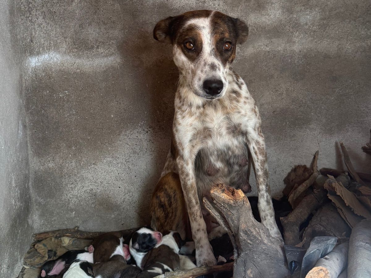 Abandoned mama was found with 9 puppies. Anything will help to build her a house, buy her food and feed mom and puppies once they stop nursing.