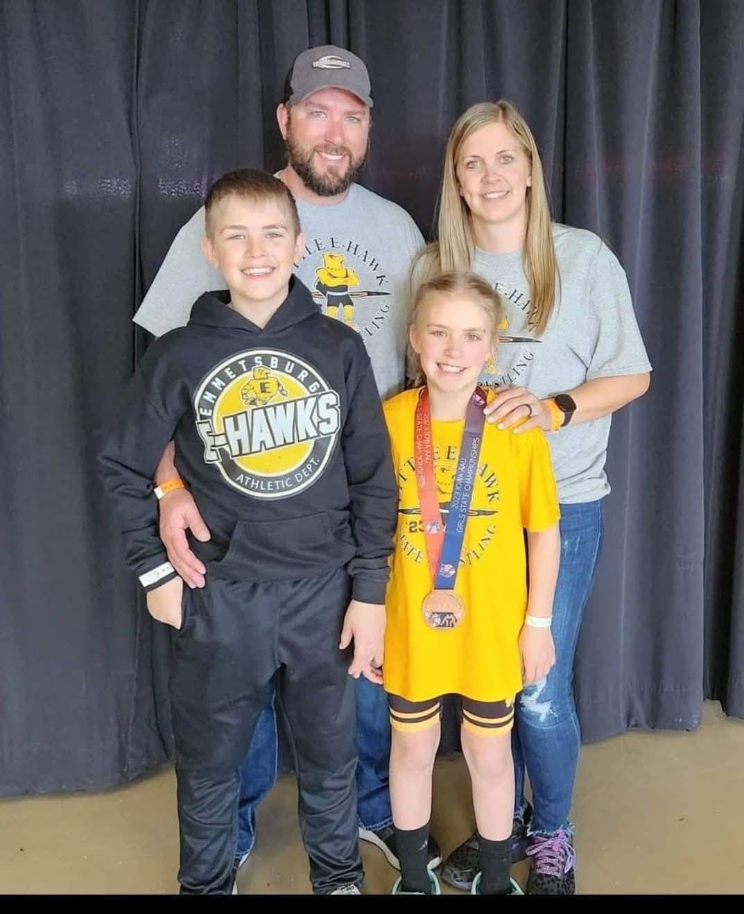 This fundraiser is especially close to the wrestling community because of Shaylee. Shaylee is a proud 7th‑grade Emmetsburg Lady E‑Hawk and a dedicated member of the Little E‑Hawk Wrestling Club and Ironhawk Wrestling Club. She is a 2X AAU Girls Wrestling placewinner, earning: 2025 AAU State – 4th Place (B‑90) and 2023 AAU State – 5th Place (A‑75).