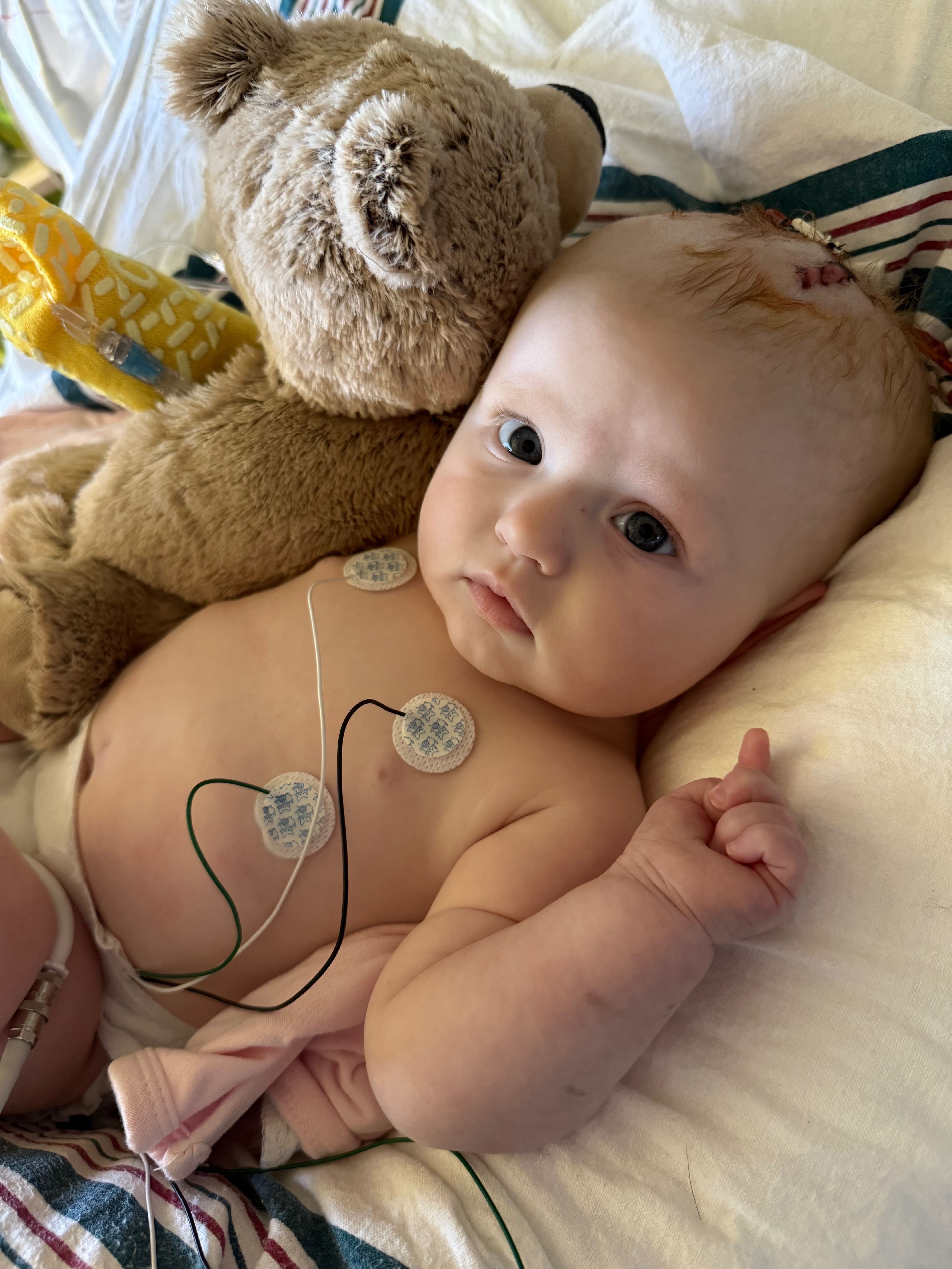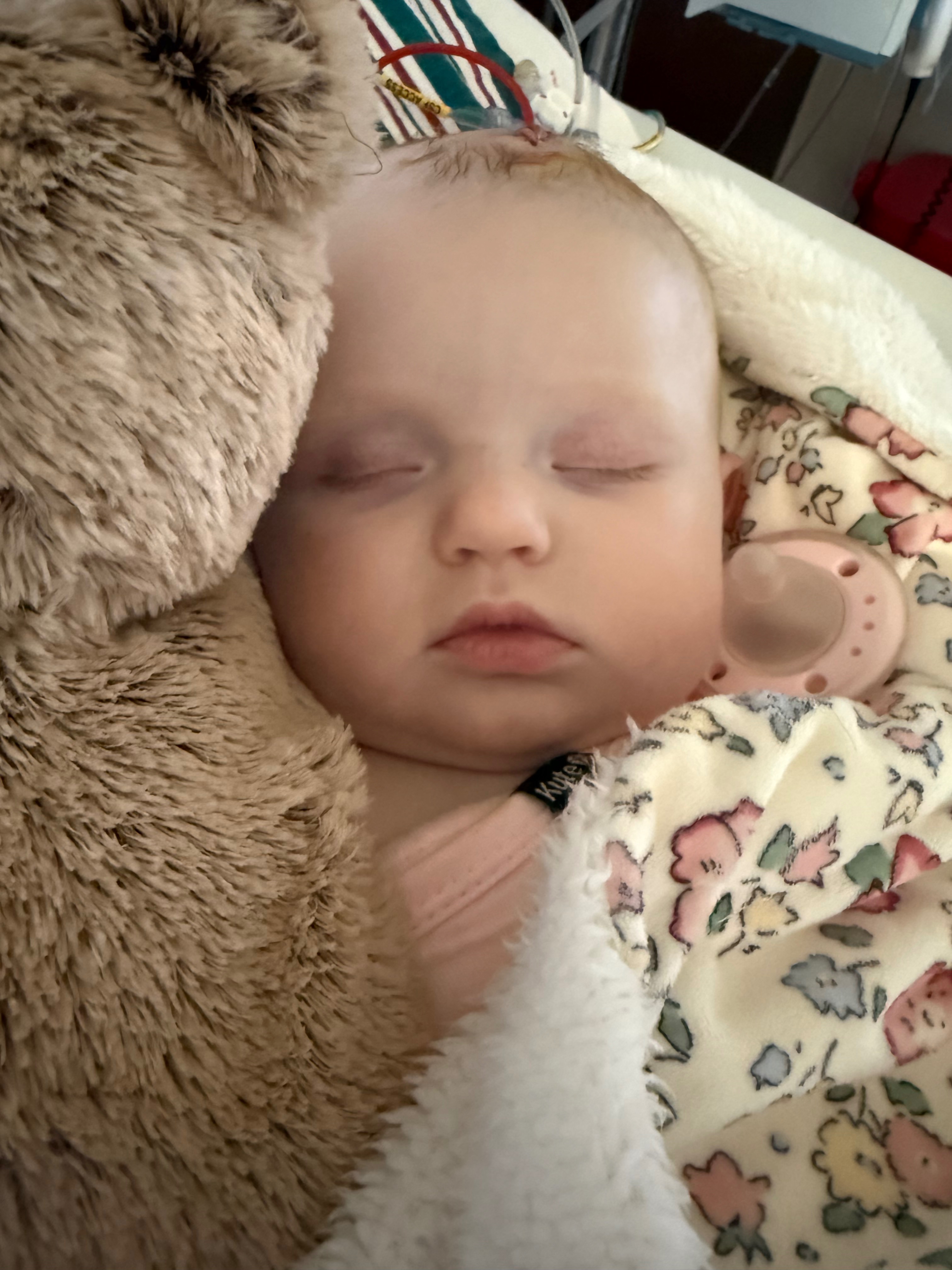 What was hoped to be a steady healing process has come with unexpected challenges. Nora is currently back in the hospital receiving treatment for complications related to her shunt, including an infection that has required close monitoring and ongoing care from her medical team.