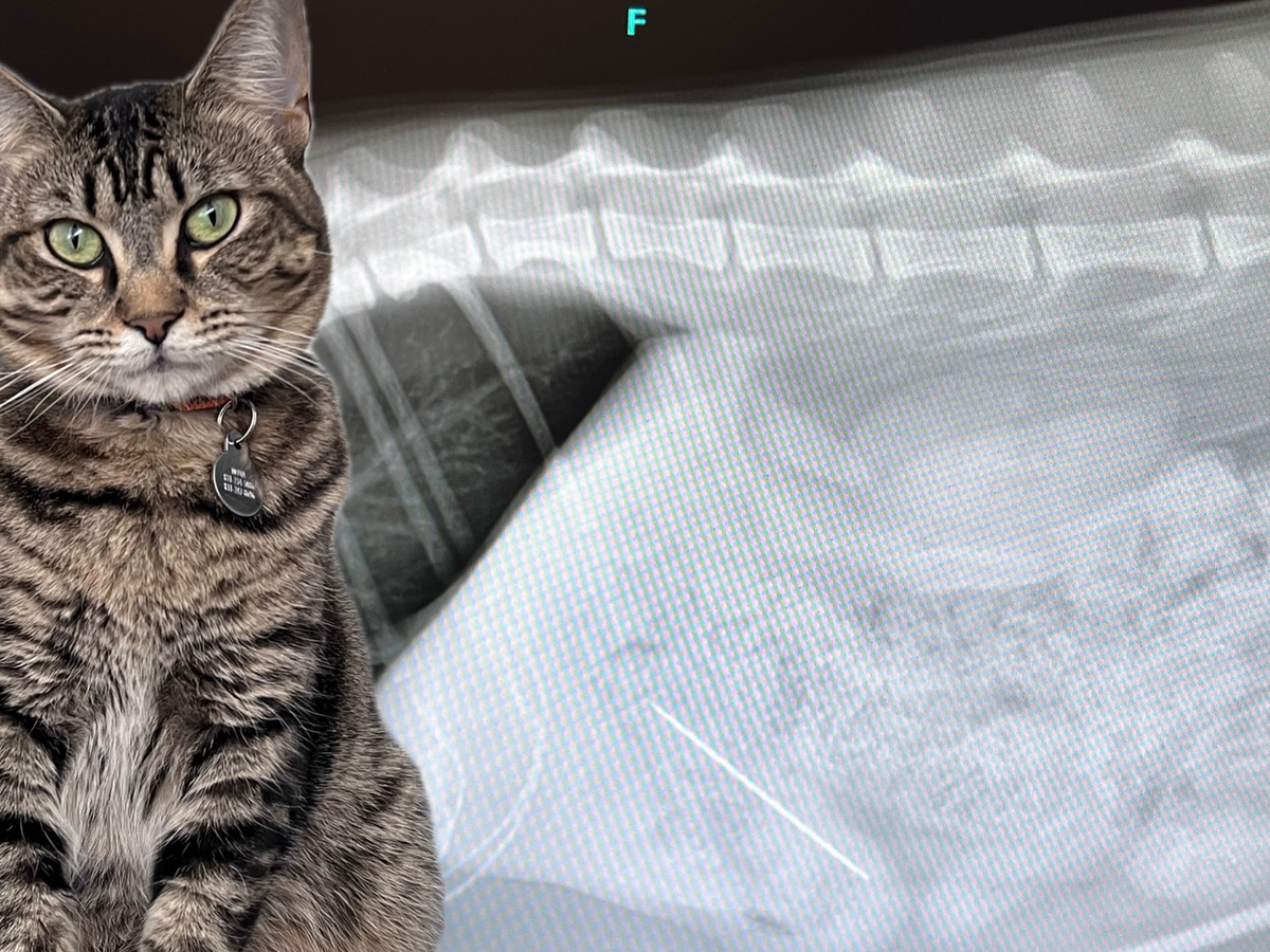 March 14th, 2026, my partner, Jules, was sewing and put it down a sewing needle down when our cat, Nova, who is notoriously a bit of a weird cat jumped up on the dresser and put it in her mouth. They immediately started trying to fish the needle out of her mouth when they saw her with it and Nova kept wiggling. They called out to me from upstairs so I ran upstairs and grabbed Nova trying to get the needle from out of her mouth. Nova doubled down with her choice to eat it and gulped the 1inch to 1.5inch long needle - she squeaked and it caused some pain and discomfort. The interaction was so fast and within seconds so there was nothing we could have done.