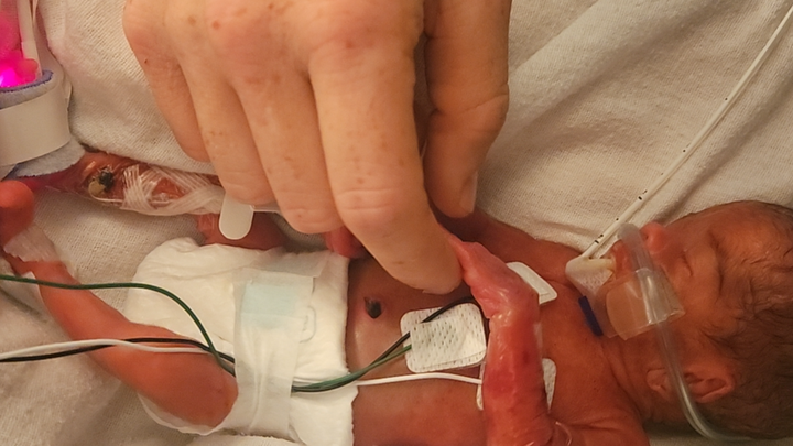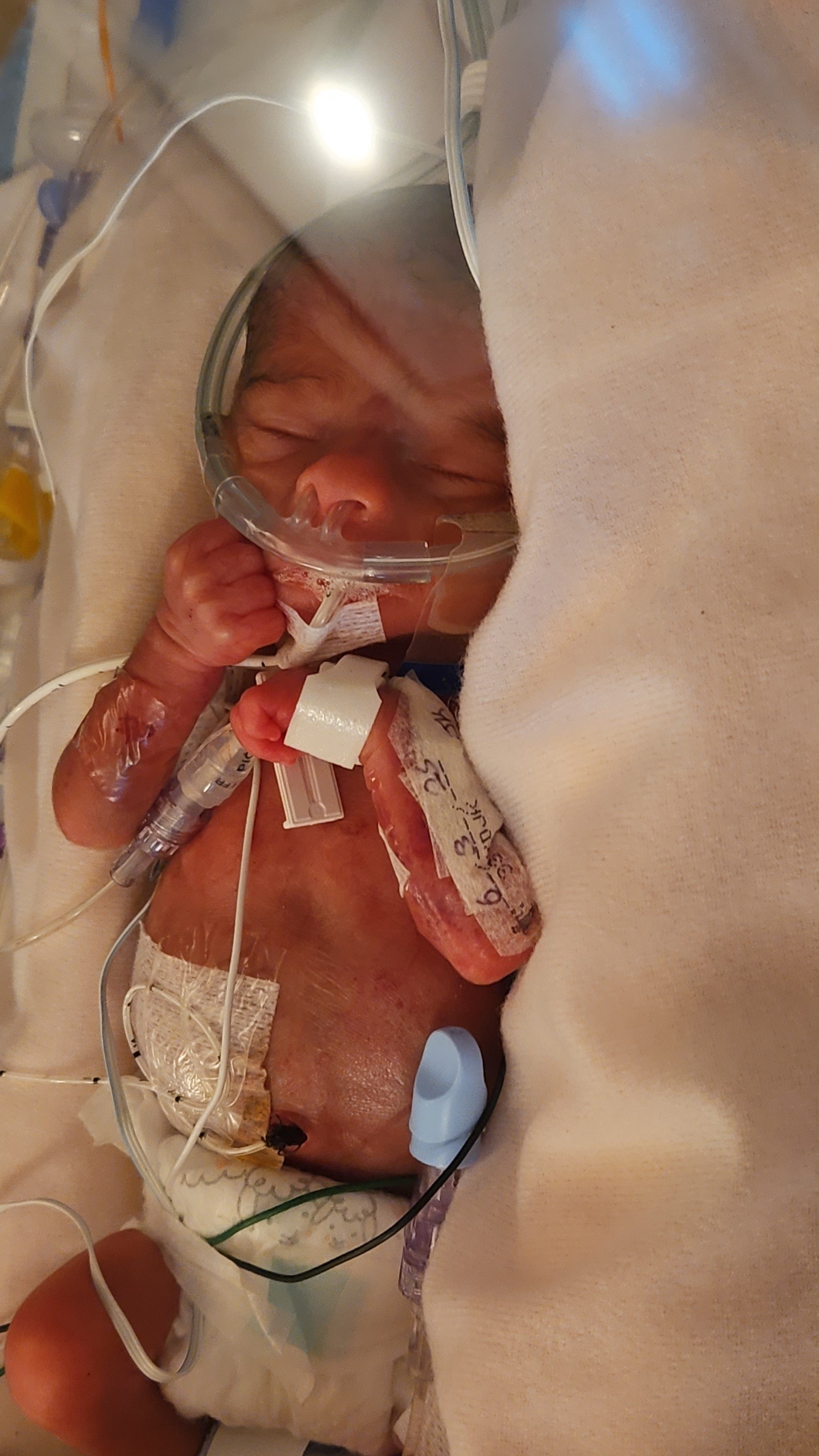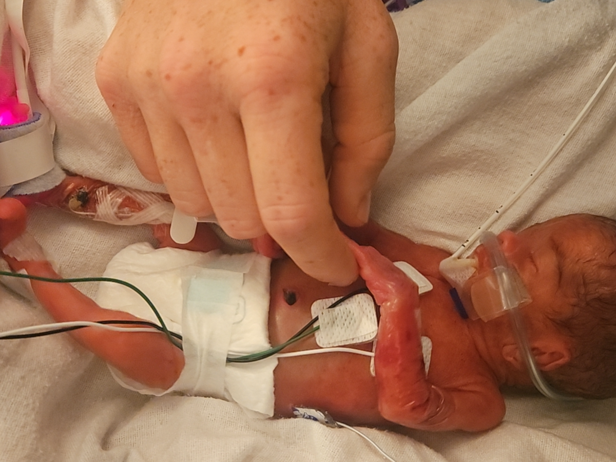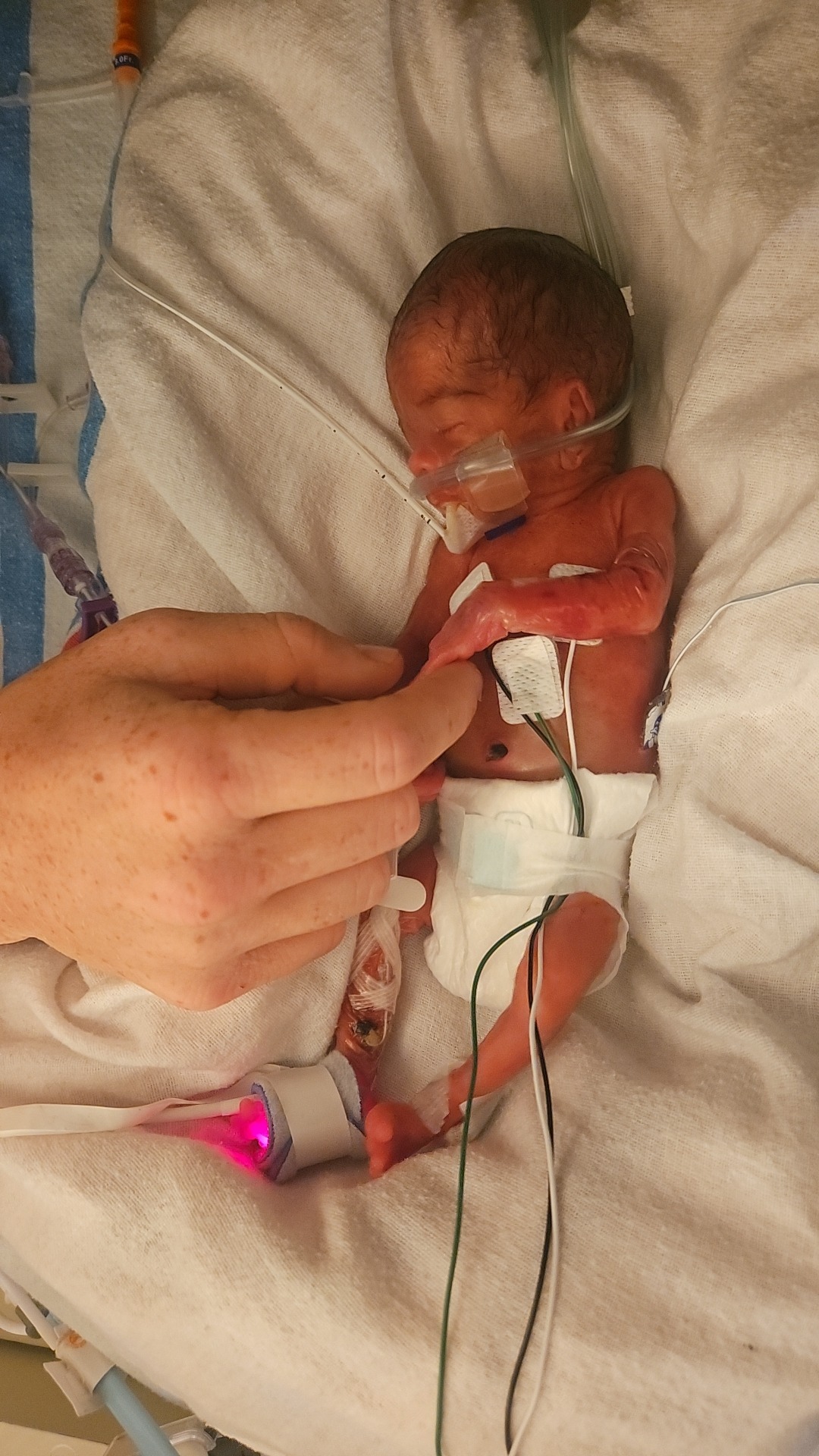 Our son was born that night. He was 25 weeks gestation and weighed 1.29 pounds. I'll never forget the first little sound he made.