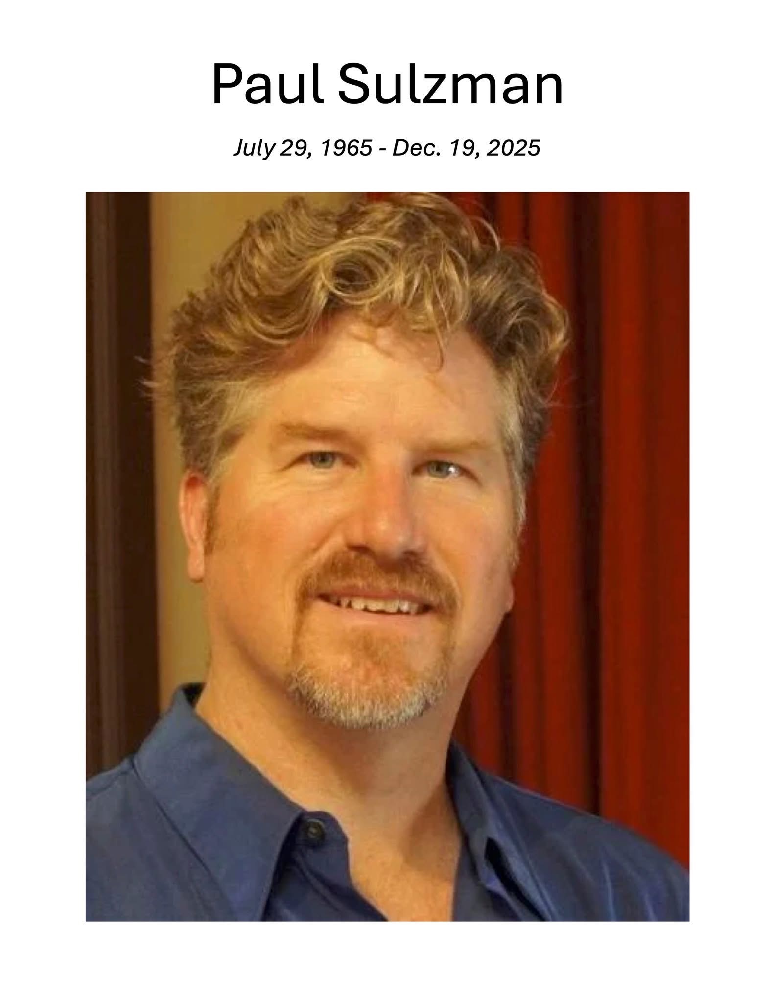 In the late night hours of December 19th, my aunt’s partner of nearly 30 years, Paul Sulzman, suddenly and unexpectedly passed away. They were truly soulmates and shared an incredible love and life together. This is a devastating tragedy for everyone who loves them. They have been active members of their community through theater and dance. They have lived a very simple but happy life together in a modest home they adore.