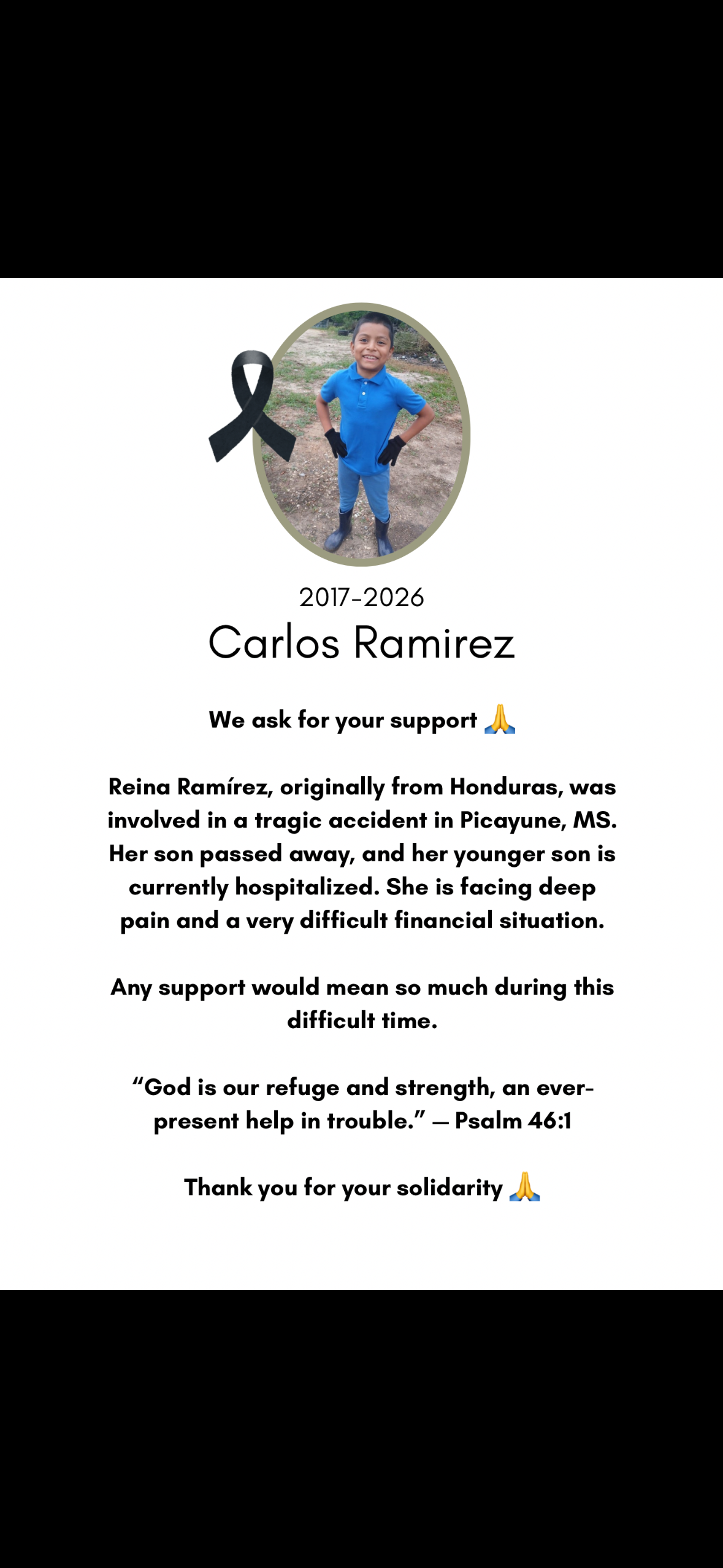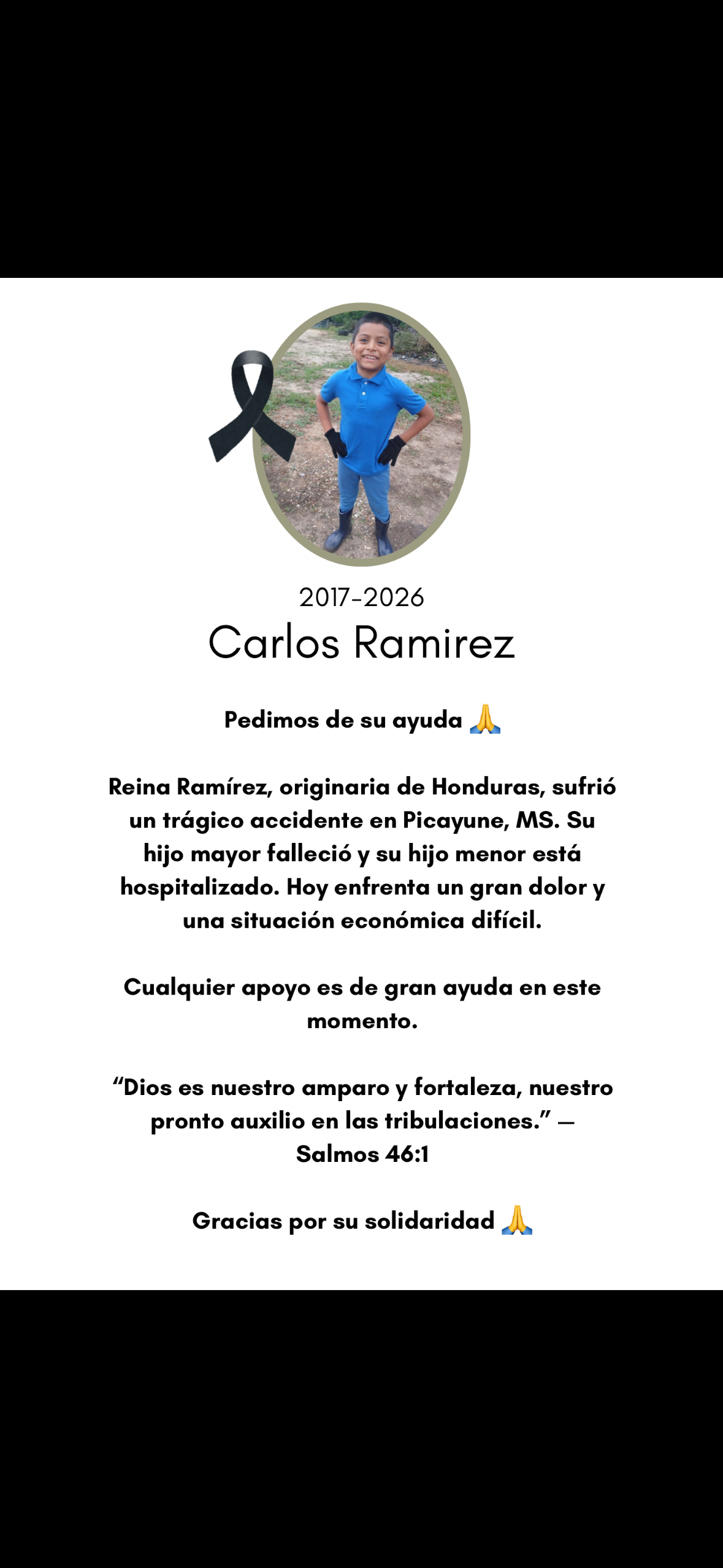 Please support Reina and her family with your prayers and any monetary amount you can give. Your kindness will help cover Carlito’s burial, Merli’s medical care, and provide some relief for living expenses so Reina can focus on her son’s recovery. Every donation and share brings hope to this family during their darkest days.