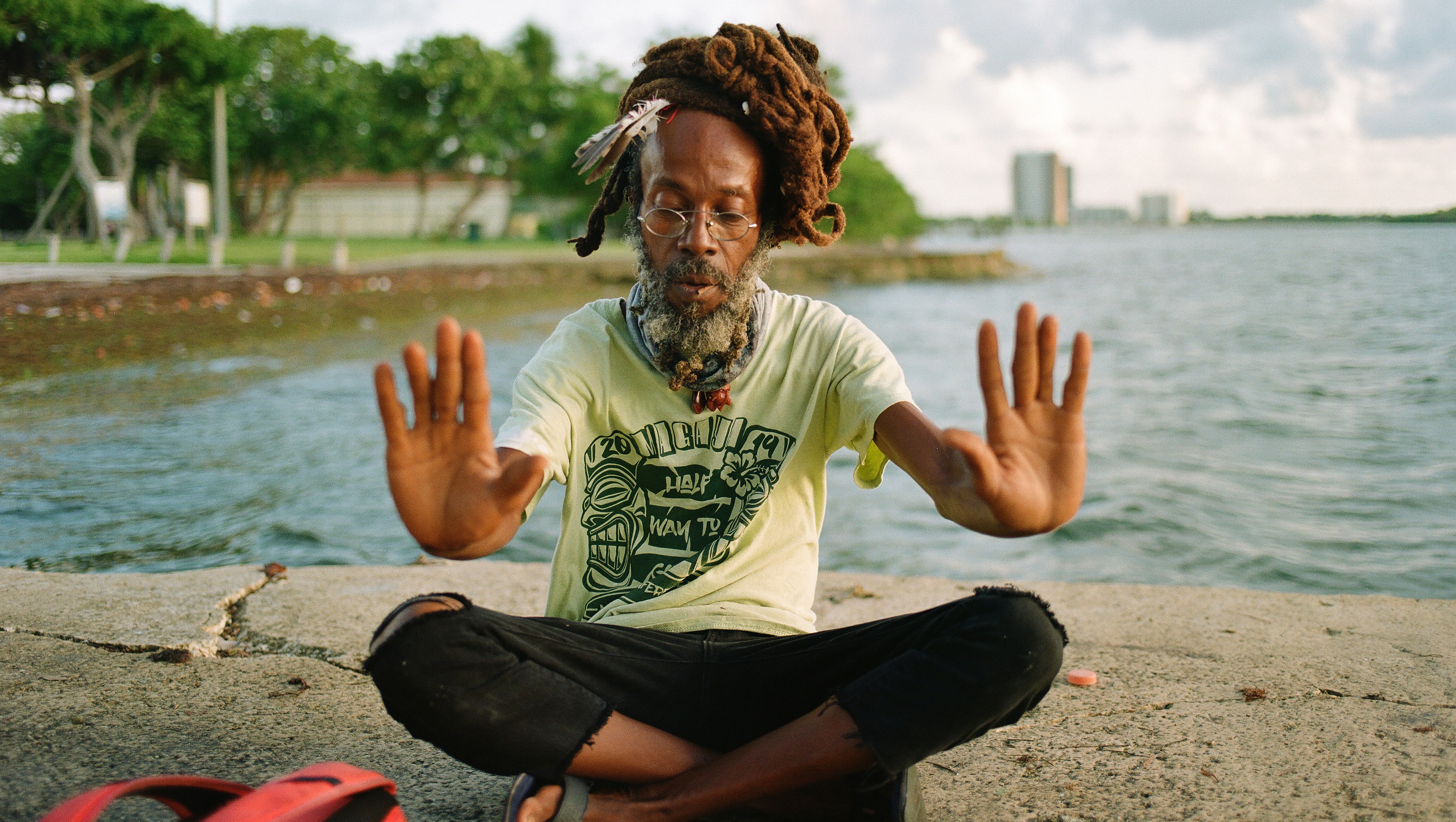 And since then, Sadhu has been trying to maintain his beliefs while surviving in a society where he doesn’t belong. In 2002, he moved to Miami and was able to find jobs working in restaurants; he tells me that he moved around a lot during that time but always had somewhere to sleep. Back then, Miami was an easier place to find work and afford a room to stay. For many years he was able to provide for himself and sustain the kind of life he wanted to live, but for the last year or so Sadhu has been houseless here in Miami. He’s now almost 58 years-old, suffers from diabetes among some other health issues, and needs consistent work in order to feed himself and his sweet pup, Chewzday. Sadhu has struggled to find stability due to many reasons including inflation, unaffordable housing and low wages, as well as his own physical disabilities.