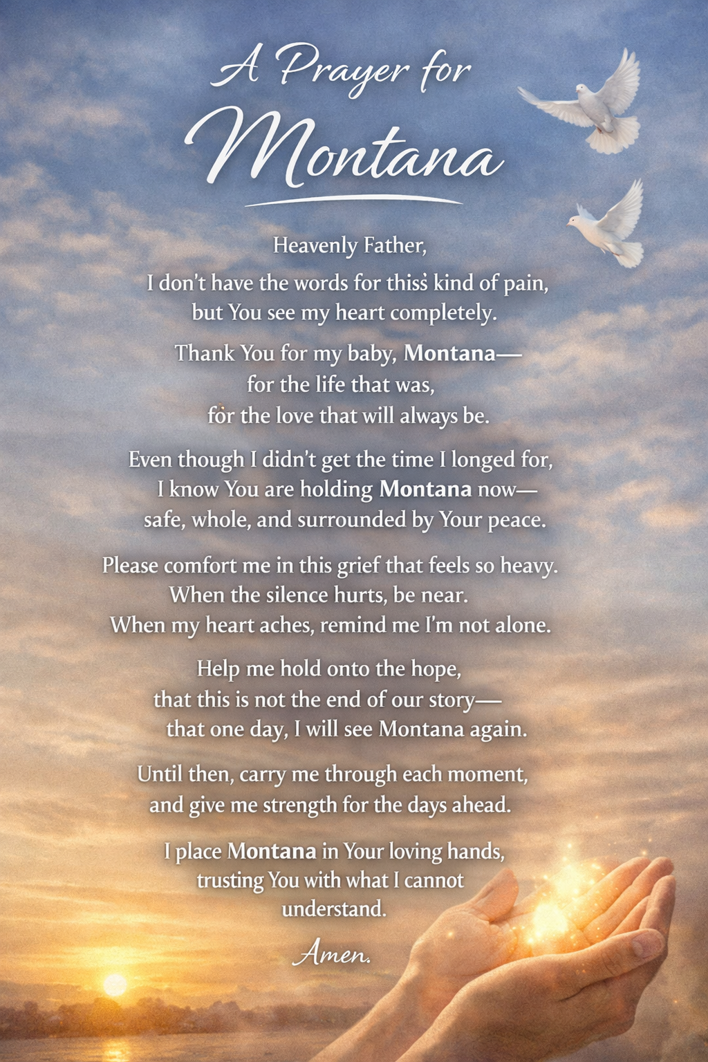 Funds raised will go toward funeral and memorial expenses for their baby boy, Montana, as well as grief counseling to help them process this devastating experience. In addition, we hope to provide Sarah and Wyatt with support for everyday needs—meals, groceries, and cleaning assistance—so they can focus on healing without the stress of daily responsibilities.