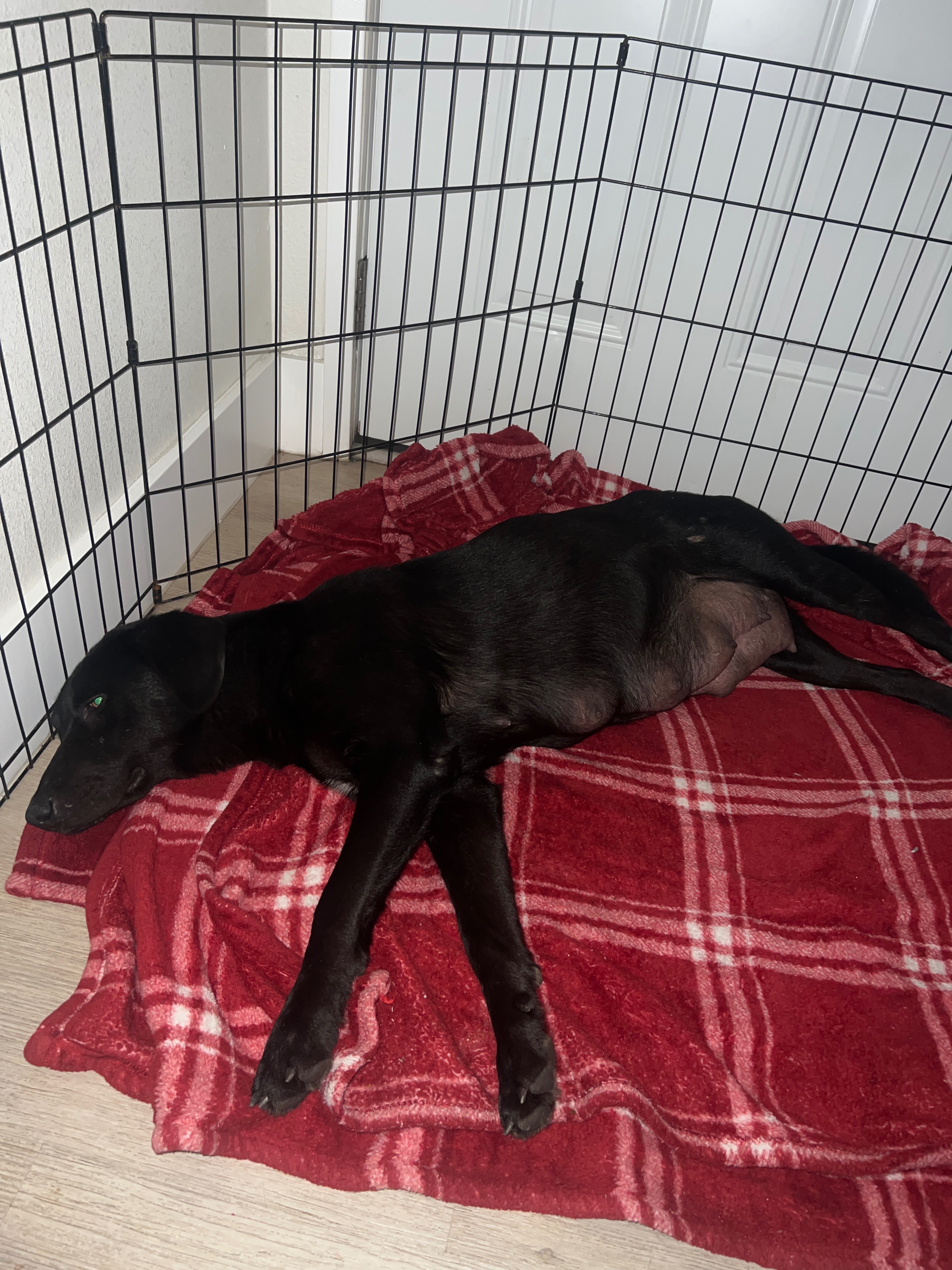 On January 4 at 2:30 AM in the morning we were driving and saw a dog running across the street near a gas station in the rain. We called her over and she was whining and immediately sat down to be pet. And wanted to get in the car. She had huge nipples filled with milk and we thought she was pregnant or just gave birth. We looked around for her puppies, but there was none we ended up taking her to nearby emergency vet who briefly looked at her free of charge thank God and said she is showing signs of an infection called pyometra a life-threatening infection that can happen to dogs after they give birth. We took her back home. I ended up calling the vet back and asked how much something like that would be and if it would be antibiotics or something like surgery, the vet said the antibiotics will temporarily help but does not completely remove the infection and they would have to remove her uterus. It is an emergency surgery that could cost anywhere from $8000 depending on her size. I also don’t know what other possible infection she could have from being a stray or what medication’s or medical she will need after surgery. I would like to save her, but don’t have the money right now. I’m sure they will need to do all types of blood tests and ultrasounds to find out if she definitely has the infection or not so whether she needs surgery or not all of the GoFundMe donations will go towards her vet bills and other necessities for her. Thank you so much for all the comments and the people who recommended a GoFundMe or mentioned donating to help her. I will keep everyone updated on TikTok. Thank you so much. God bless you.