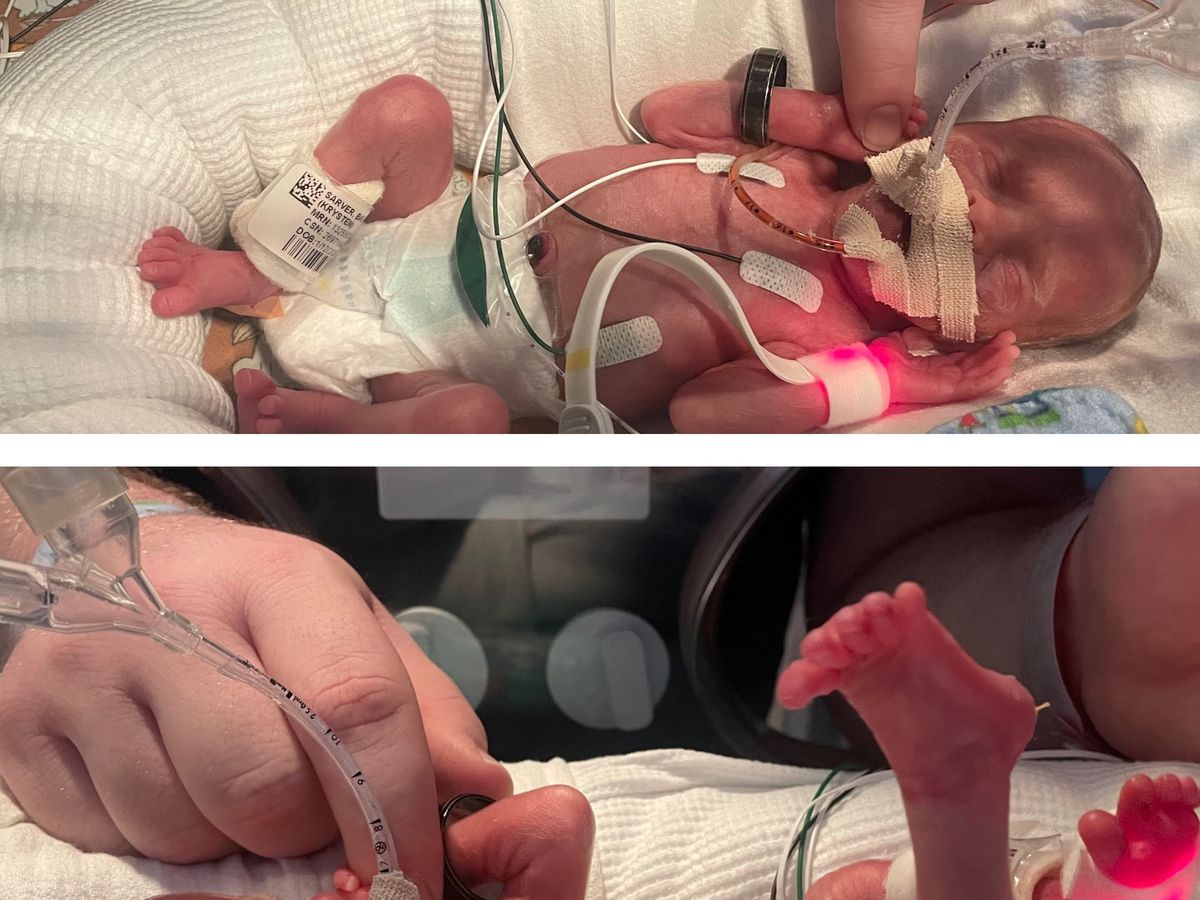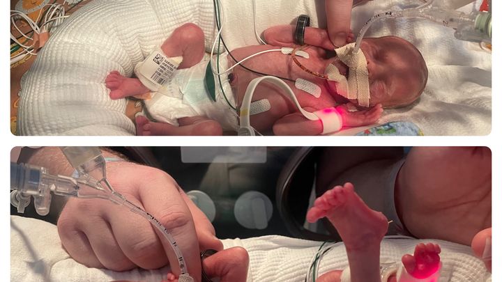 Krysten and Dan welcomed their twin babies, Eliana ( 1 lb 11 oz) and Tommy ( 1 lb 13 oz) on 1/12/24 at just 25 weeks 3 days gestation. When Krysten’s water broke unexpectedly, she was rushed to West Penn Hospital. Unfortunately she was already in labor and had started to dilate. After laboring unmedicated for hours, when she was finally checked she was fully dilated and was put under and rushed for an emergency C-section to bring these tiny miracles into the world.