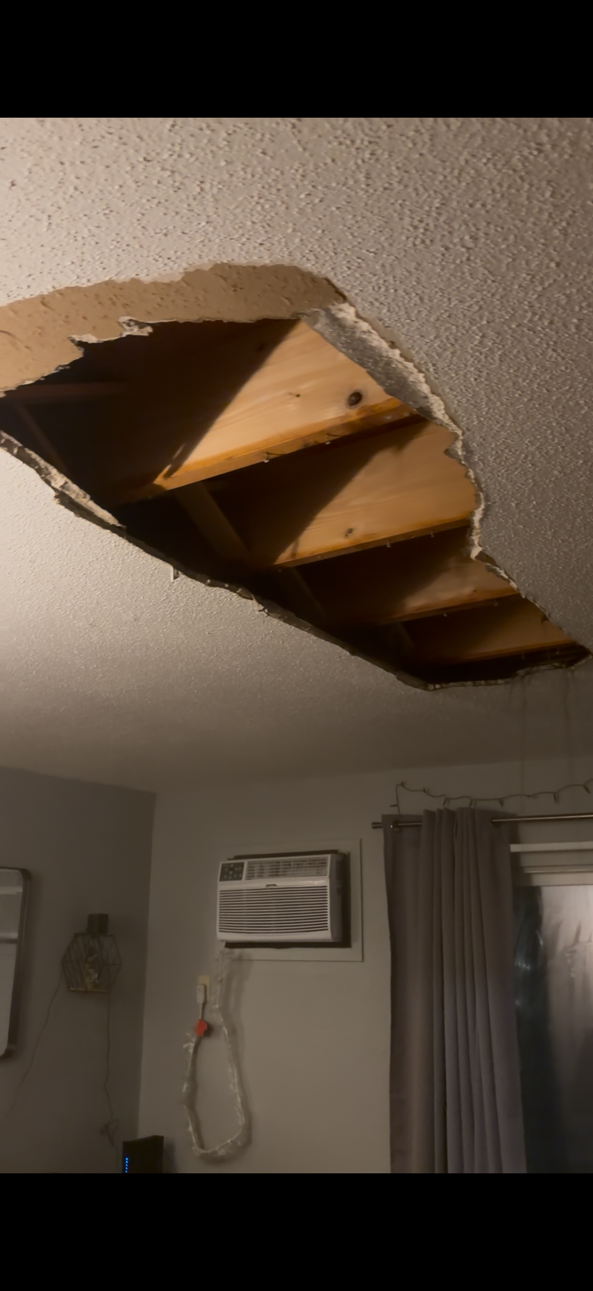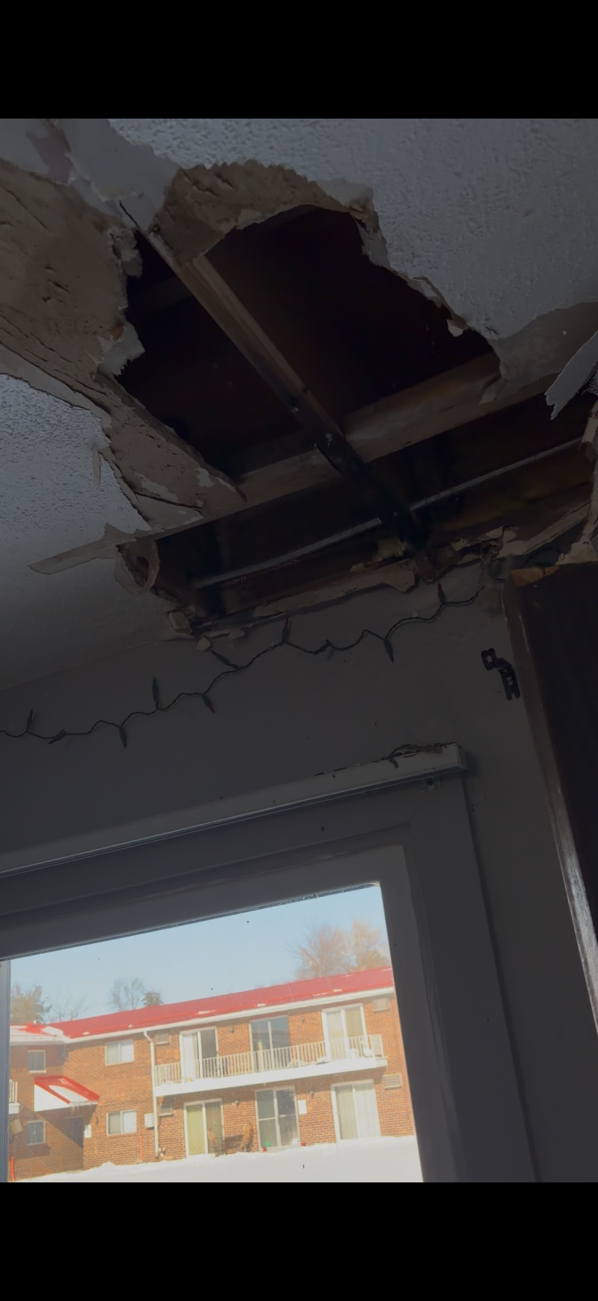 On Saturday night, January 24th of 2026 my family and I were sitting in the living room playing a card game together. Within minutes our living room ceiling started to rapidly leak, and then suddenly collapsed, spilling out boiling hot water and ruining majority of our items from the living room and some items in my husbands and I’s room, and our 7 year old daughters room. There is no open units from the company we rent from- so no place to go. And their insurance company has not answered our calls or returned our voicemails as of right now. All of their reviews on their website are terrible. Leaving us wondering if we are going to be paid what we are owed for our belongings. Let alone a place to live, food to eat, and other basic necessities. If you are able to help us, it would be extremely appreciated.