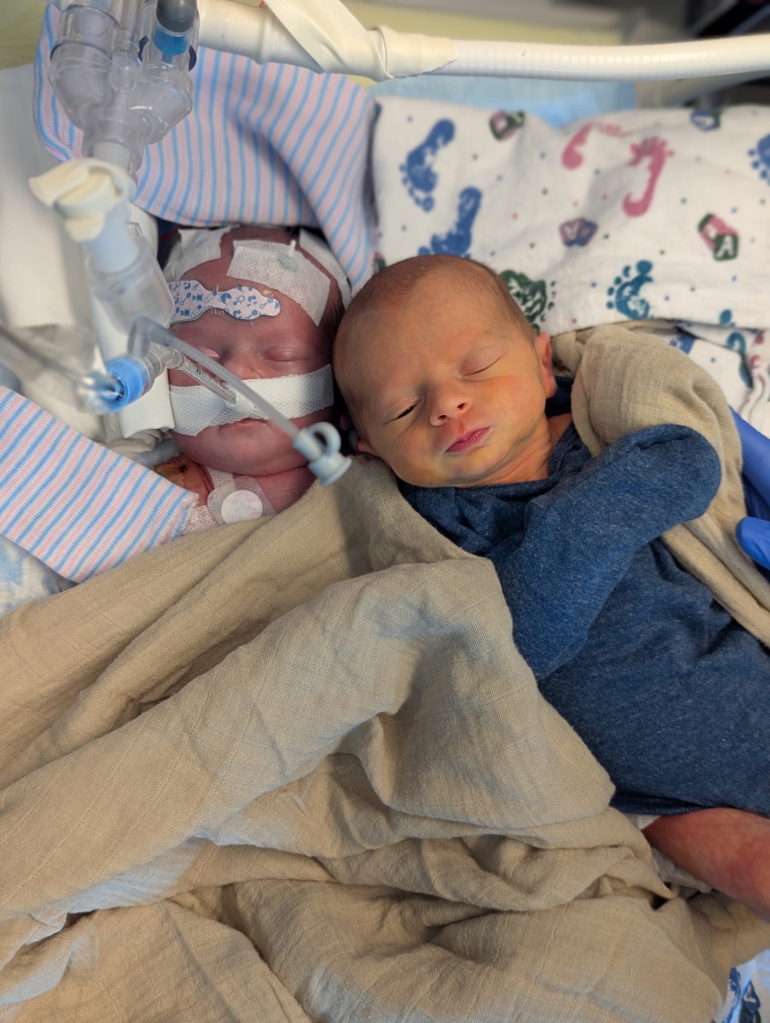 On July 3rd, 2025, Sam and Alyssa were blessed with the arrival of their beautiful twin boys, Mason Grant Lindahl and Brooks Levi Lindahl. Mason was born at 12:04 PM, healthy and alert, and was able to be with Mom and Dad right away. Just three minutes later, at 12:07 PM, his twin brother, Brooks, entered the world, a precious boy who would begin his life with extraordinary challenges.