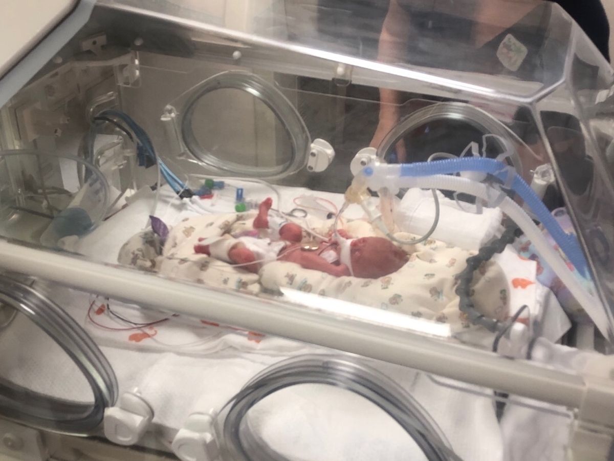 Baby Audrey weighed in at 1 (one) pound 5 ounces and has quickly conquered being able to breathe on her own, but she still has a long road ahead of her.