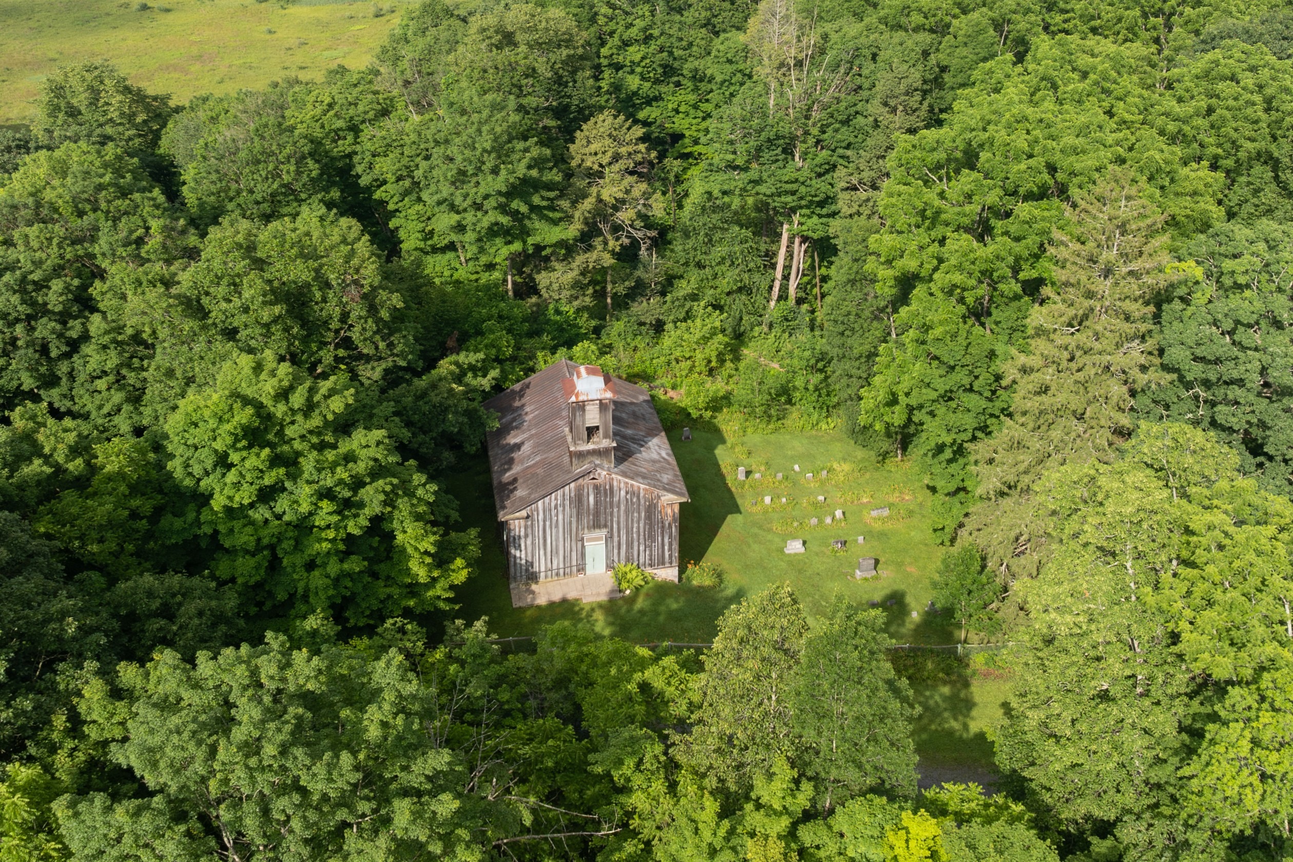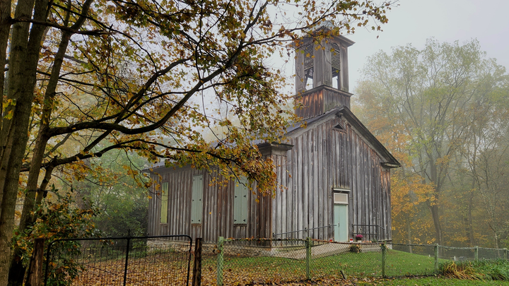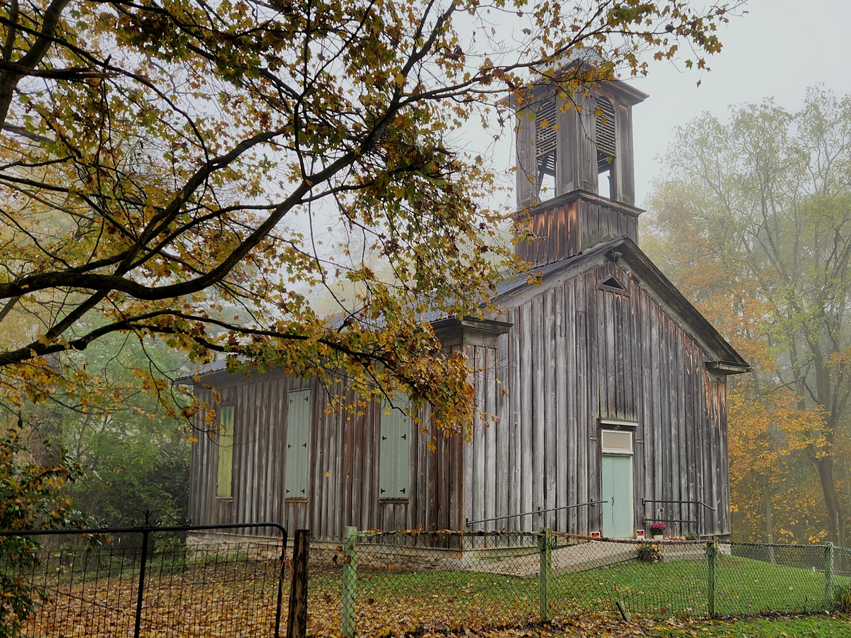 Anyone wishing to see the proverbial “Little Brown Church in the Wildwood, that little brown church in the vale” need look no further than an old country church shaded by ancient pines, hemlocks, and oak trees on the side of a small Centre County, Pennsylvania ridge known as Egg Hill, near Spring Mills. Egg Hill was so named by early settlers here because they found a profusion of wild turkey nests filled with turkey eggs on its hillsides when they first explored it. The peaceful forest and dark ravines near the top of this sylvan retreat seemed conducive for a place of worship, and so what now exists as the current structure was completed at this spot in 1860. Serving as a social hub for its Evangelical congregation of Daubermans, Hennigs, and other families, it remained an active place of worship until dwindling enrollment forced it to close in 1927.