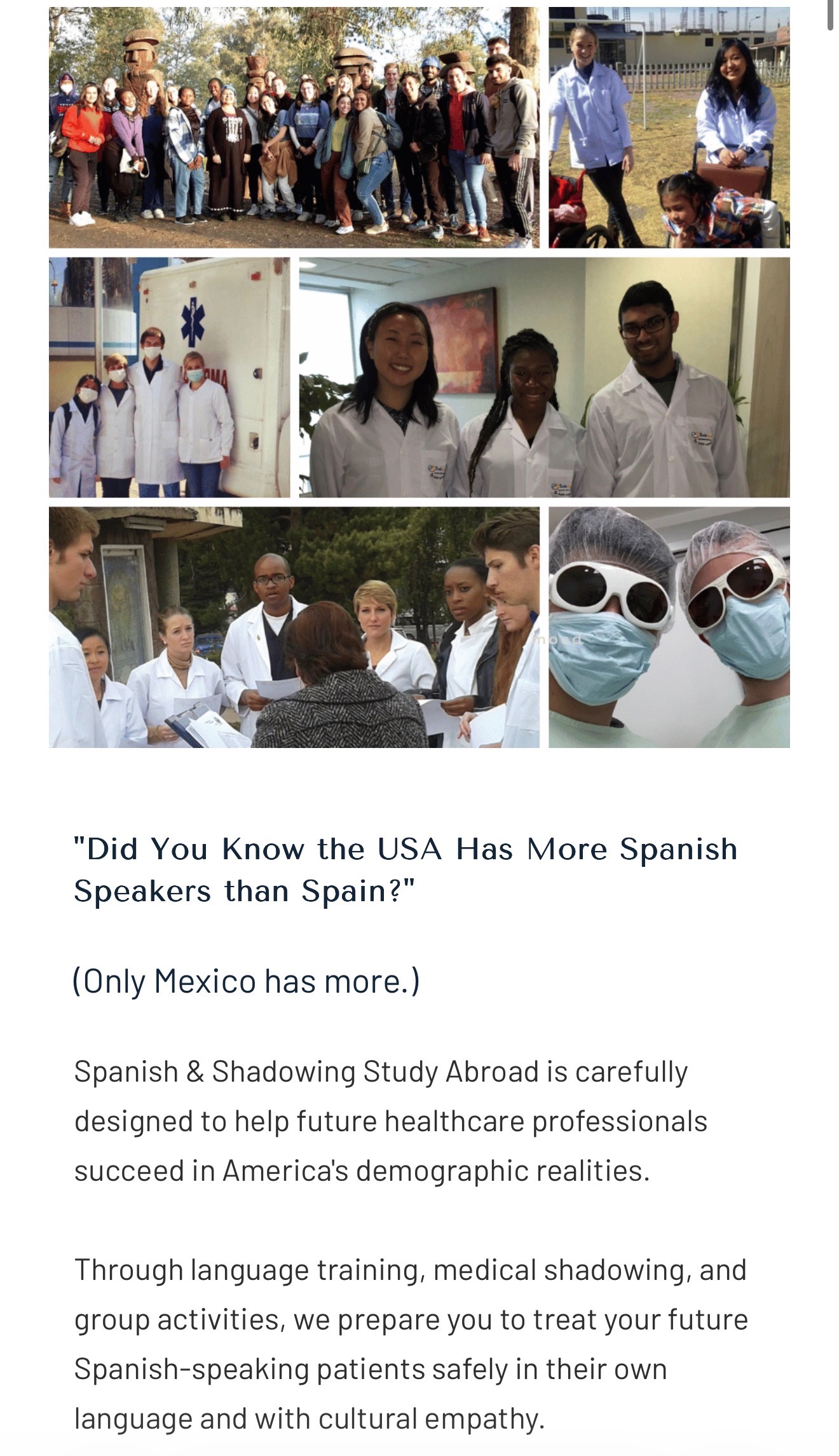 I hope to someday become not only a physician, but a community leader focused on bridging the gap in healthcare disparities amongst marginalized communities. The United States has the 2nd largest Spanish speaking population, behind Mexico. By learning Spanish and applying it to my future career, I can help create an environment where more people feel welcome and comfortable seeking care. I believe that everyone deserves access to quality healthcare and to feel safe and understood.