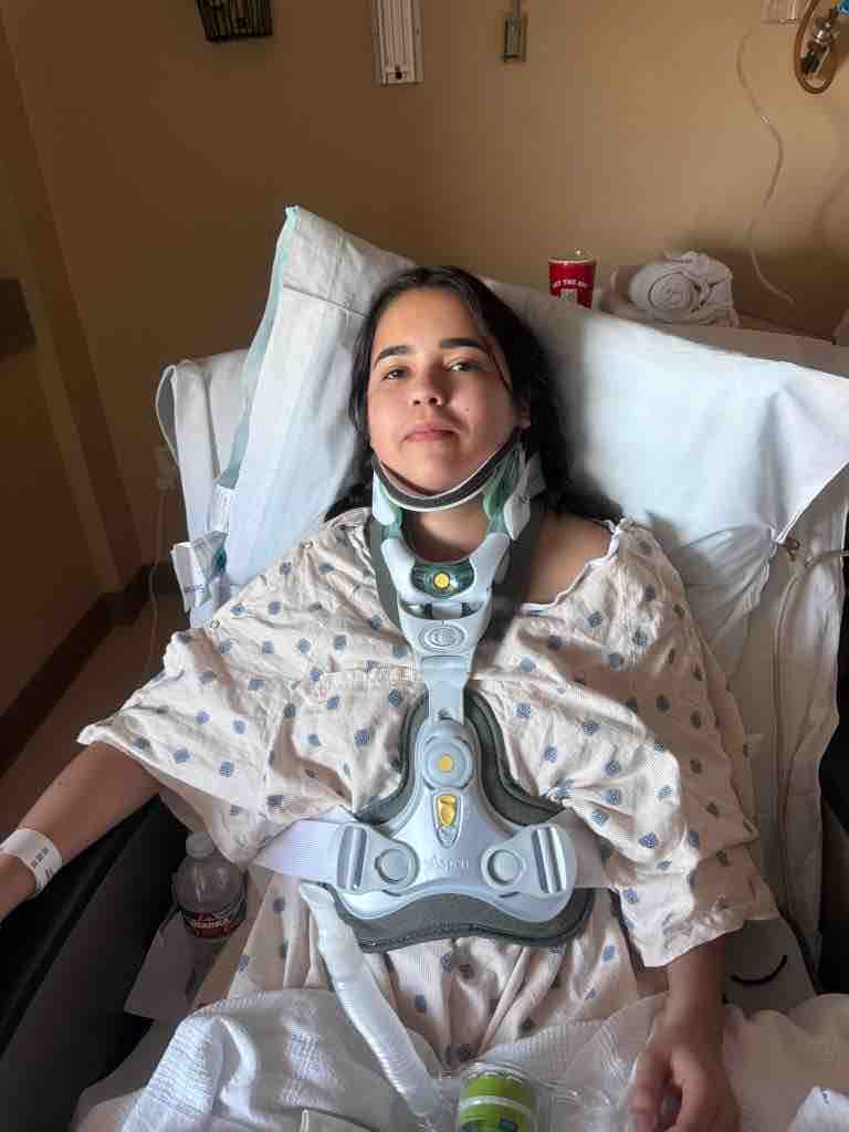 On March 1st, my daughter Gabby was involved in a devastating car accident caused by a drunk driver who was driving the wrong way, uninsured, and using the wrong license plate. The accident happened around 3am and changed Gabby’s life in an instant. She suffered a spinal fracture from her T1 to T4, and now has to wear a neck and back brace all day, only removing it when we help her bathe. The road to recovery is long and challenging, but Gabby’s spirit remains strong.
