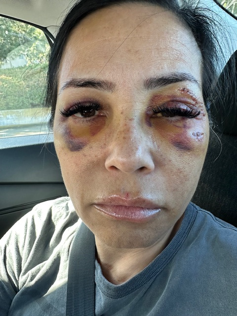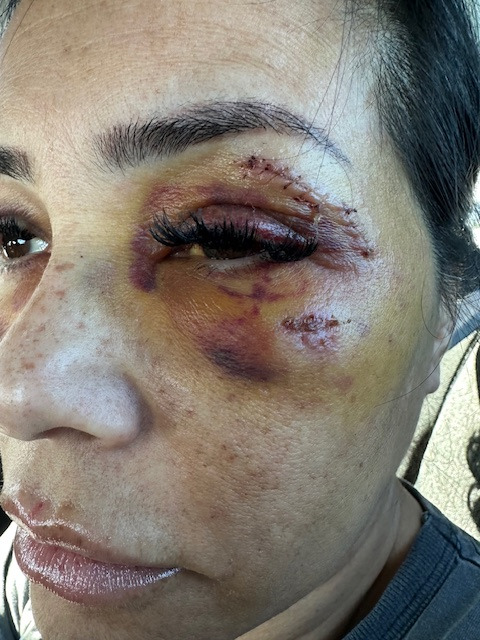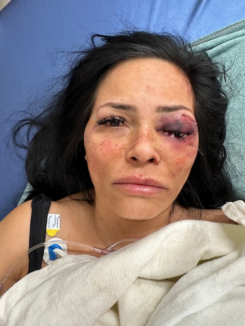 Praise God for this. She was immediately transported to UCI trauma center in Orange where she may have permanent damage. She required excessive stitches, knifepoint punctures in her throat and forehead, bruising all over her body and the most serious was an orbital facial bone blowout, where she required extremely invasive implant and reconstructive surgery where she has lost feeling in half her face, blew out her eardrum beating her so badly. Had the police not responded when they did, he would have most likely killed her.