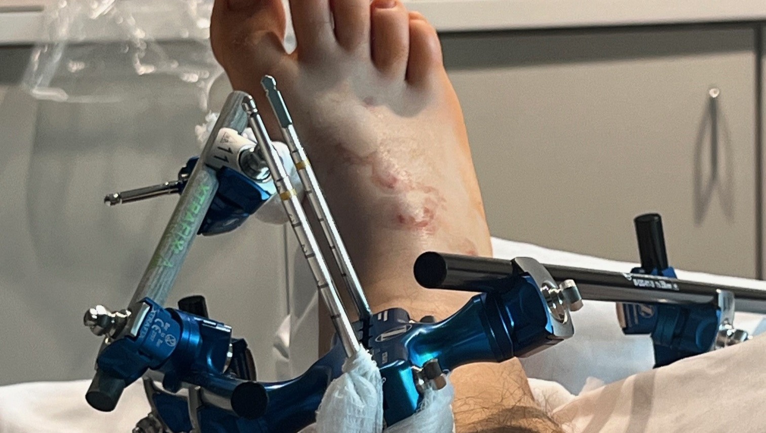 Geoff's prognosis is good right now, with a second surgery scheduled in November. He has broken / shattered parts of the distal tubular and fibula as a result of a mule-related accident but he's in good spirits and looking forward to getting back on his feet!
